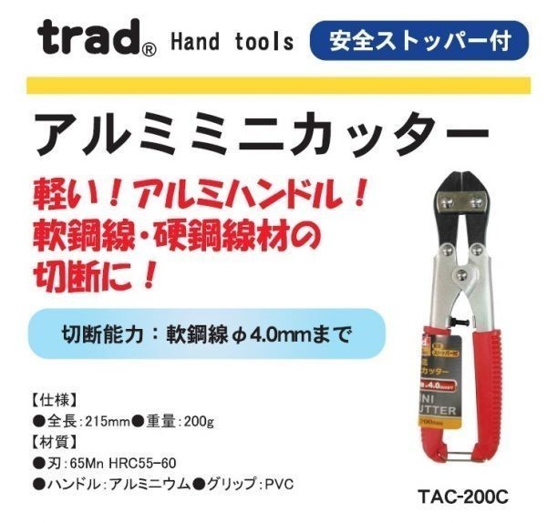 ☆クリックポスト・メール便 送料無料☆ Trad アルミミニカッター TAC-200C ※823275 ◎アルミハンドル ◎切断能力 軟鋼線:Φ4.0mmまで