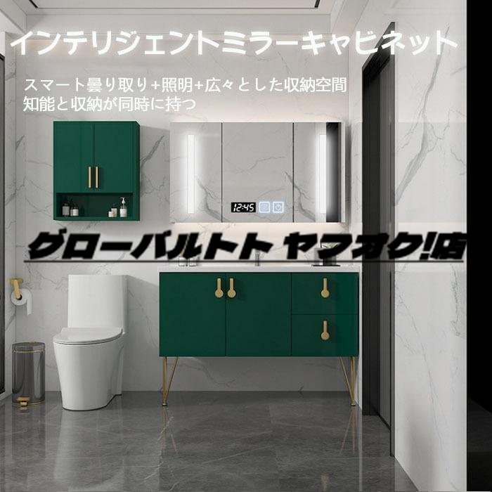 ★多機能ミラーキャビネット:LED鏡、 曇り止め、時間温度表示、収納