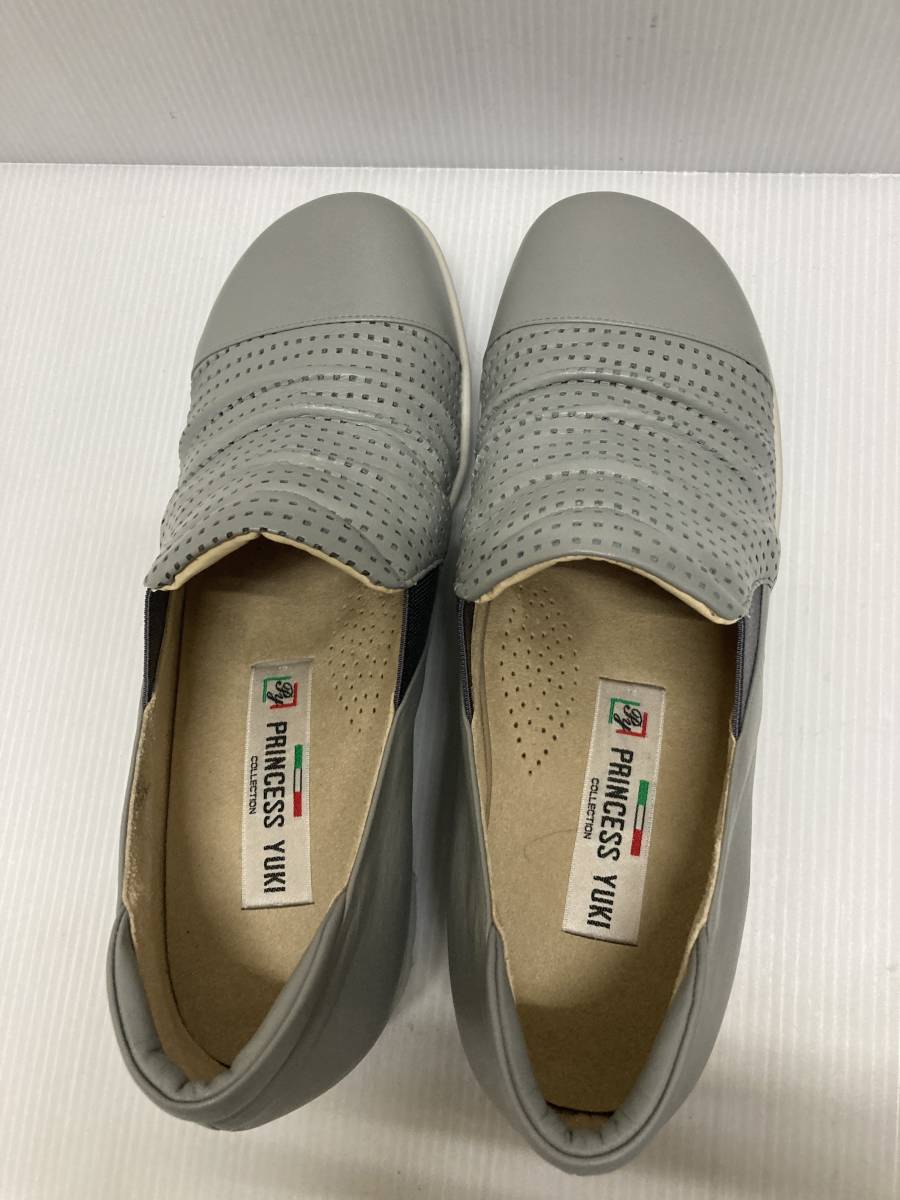 ●お買い得!婦人 革カジュアル プリンセスユキ OS6321 グレーベージュ 24.5㎝ 幅EEE 日本製 サイドゴムですっと履きやすい