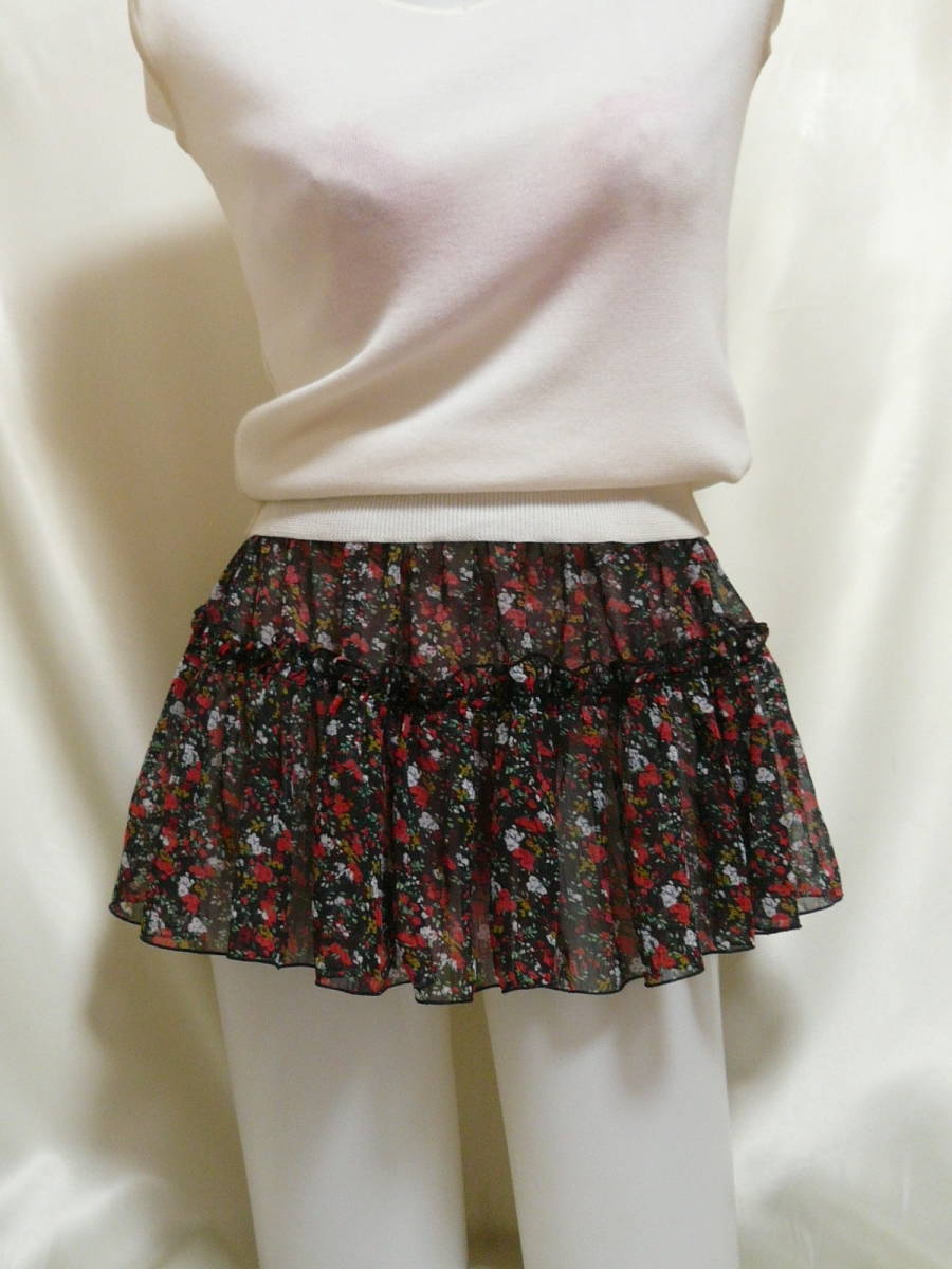 ♪♪黒地に赤小花柄の超マイクロミニ☆清らかにシースルー^^♪♪
