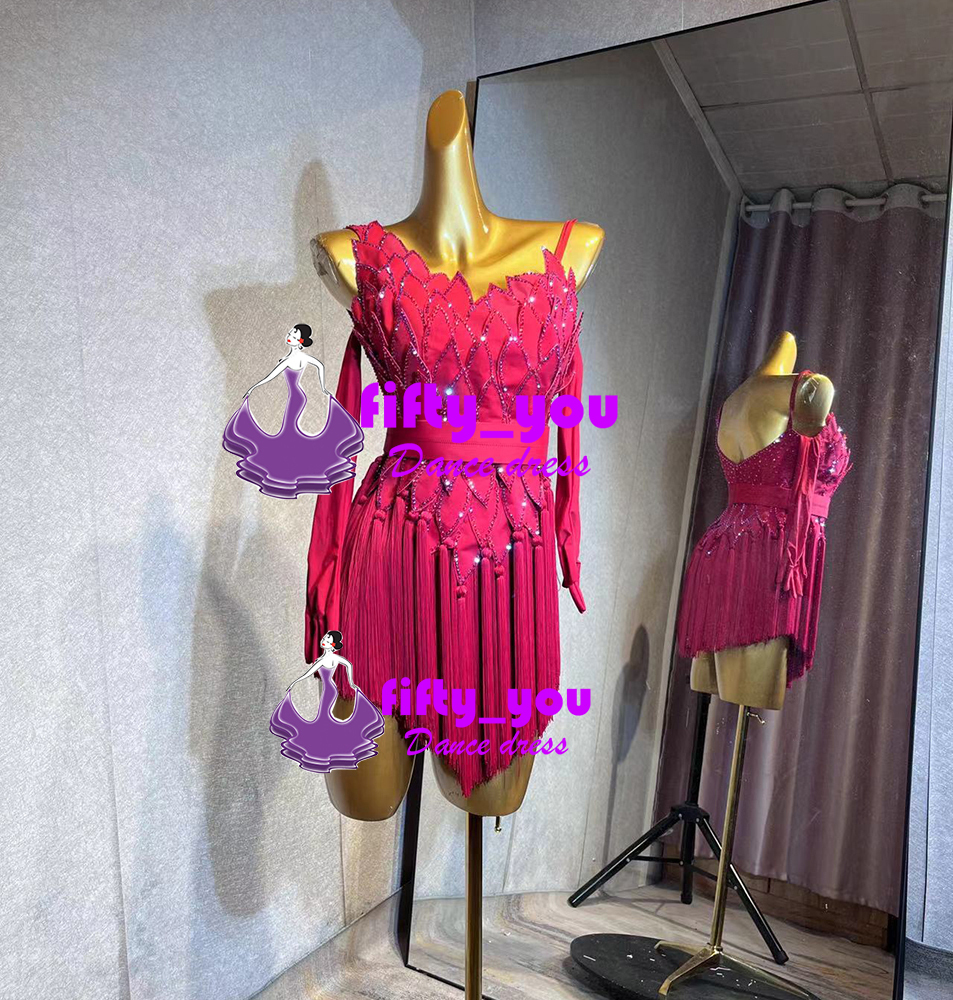 新品fifty_you 高級品 レディース社交ダンス衣装 競技デモ用ドレス サイズセミオーダー ラテンダンスドレス ライトストーン飾り 立体感