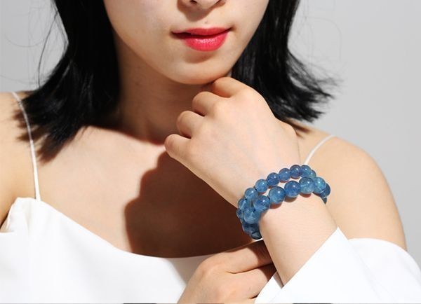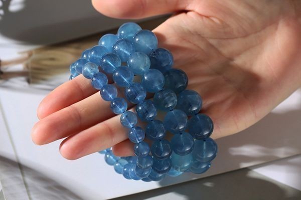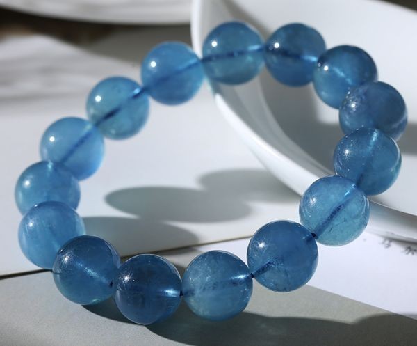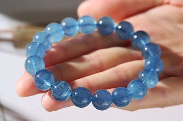 [EasternStar] 海外発送 シーブルー アイス アクアマリン コレクション 天使の石 藍柱石 藍玉 玉サイズ12mm 腕回り約16.5cm