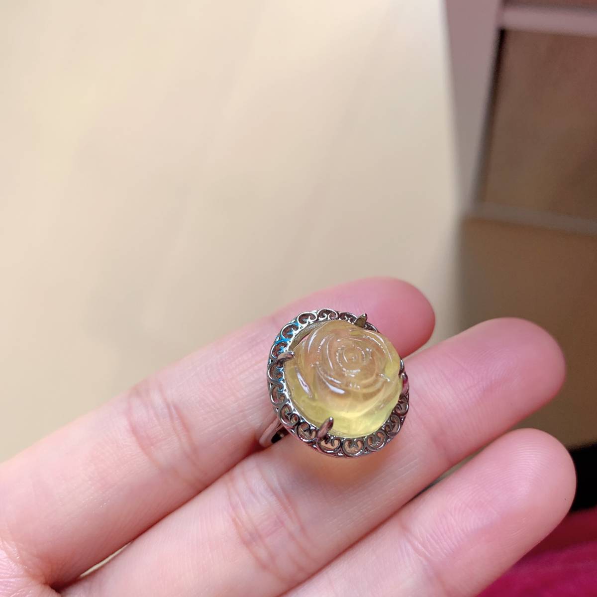 ◇フローライト◇螢石◇指輪◇リング◇フリーサイズ◇バラ形◇彫刻◇天然石◇パワーストーン◇巾着袋付◇プレゼントにも 024R112305