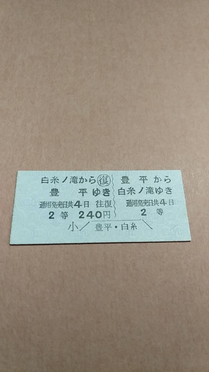 定山渓鉄道 往復 豊平⇔白糸ノ滝 2等 240円 豊平駅発行