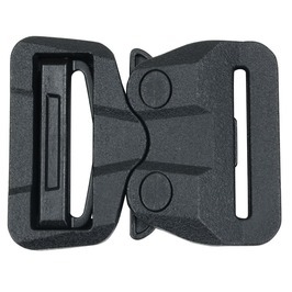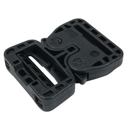 着脱がとても簡単に行えるバックルで、付けるときはバーの有るバックルをもう片方に挿し込むだけ、取り外しは2本のレバーを抑えながら引き抜くだけ。