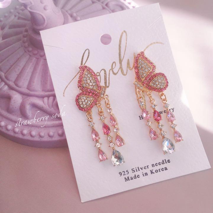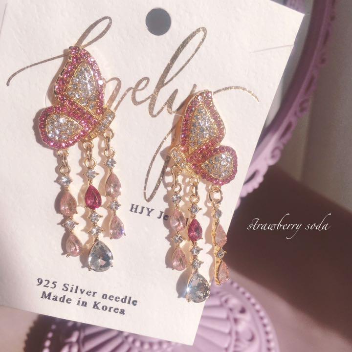 キラキラのラインストーンで飾られた蝶々と、ゆらゆら揺れるビジューのタッセルがとても華やかですεз*。