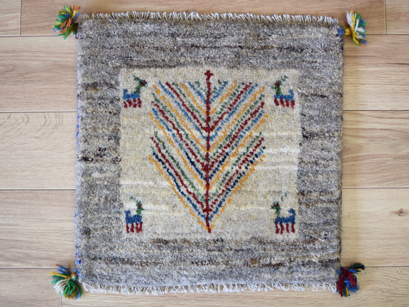 新品 ペルシャ ギャッベ 座布団 クッション サイズ ミニラグ 43 x 44 cm No.2543 肉厚 ウール 手織り 絨毯 ギャベ チェアマット