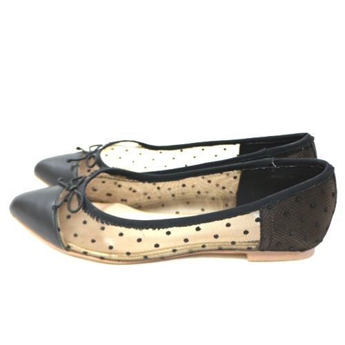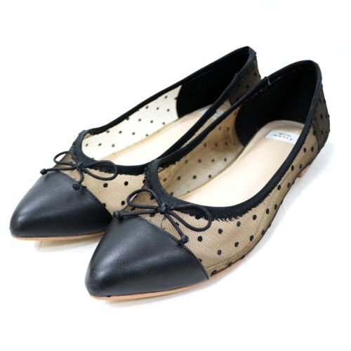 MIO NOTIS ミオ ノティス レザー×チュールカッター フラットシューズ 36 ブラック