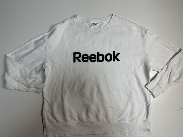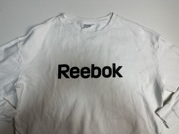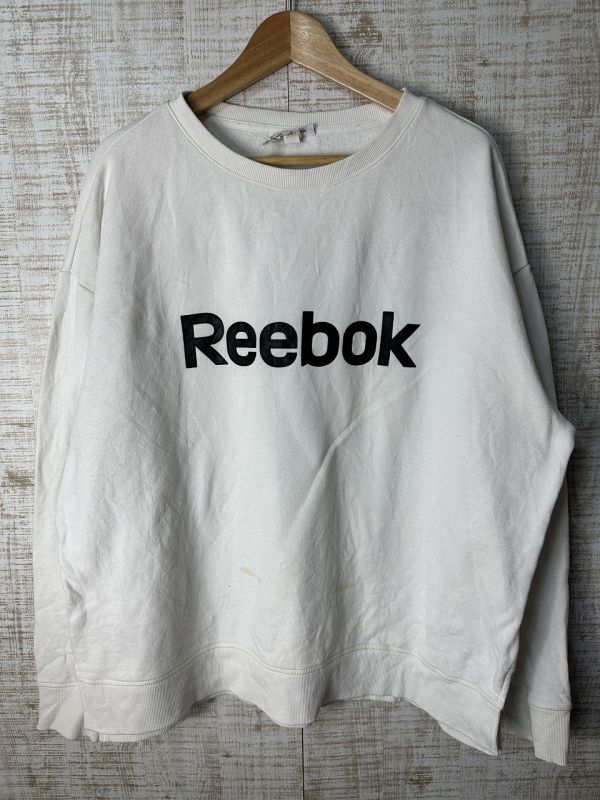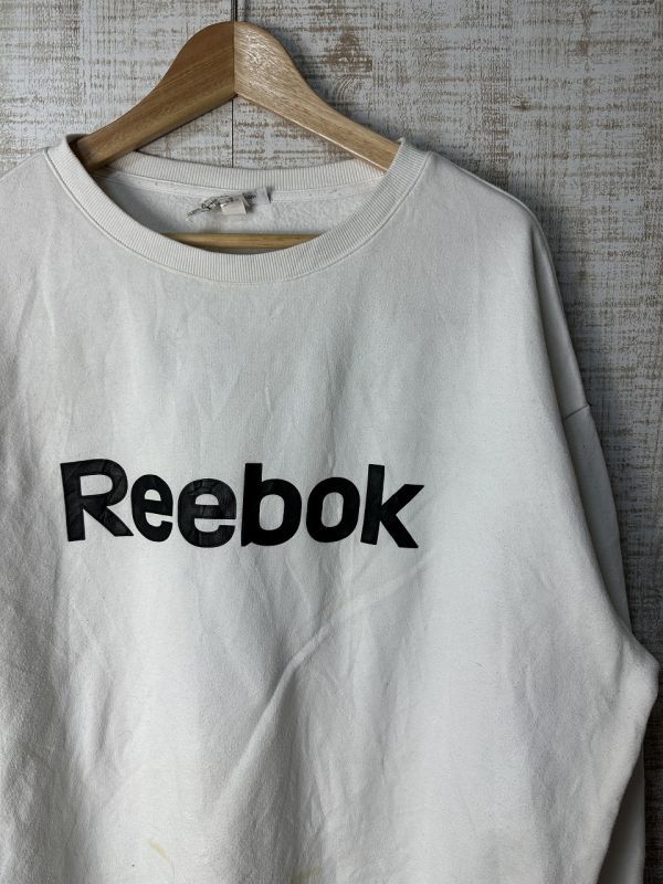 ●US USED 汚れアリ ビッグサイズ US古着 Reebok リーボック スウェット トレーナー ロゴ プリント 白ホワイト【2XL/XXL】裏フリース