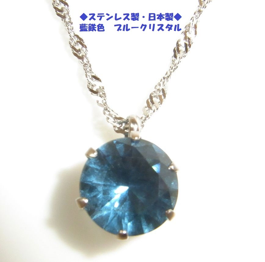 ◆ブルークリスタル ペンダント ネックレス 藍鉄 色 ステンレス製・日本製◆ | |||