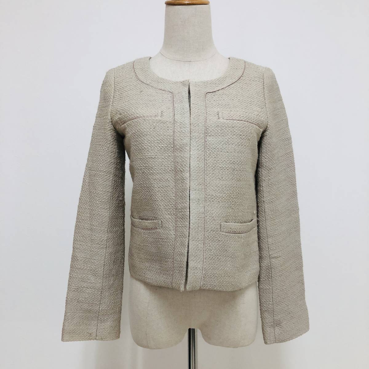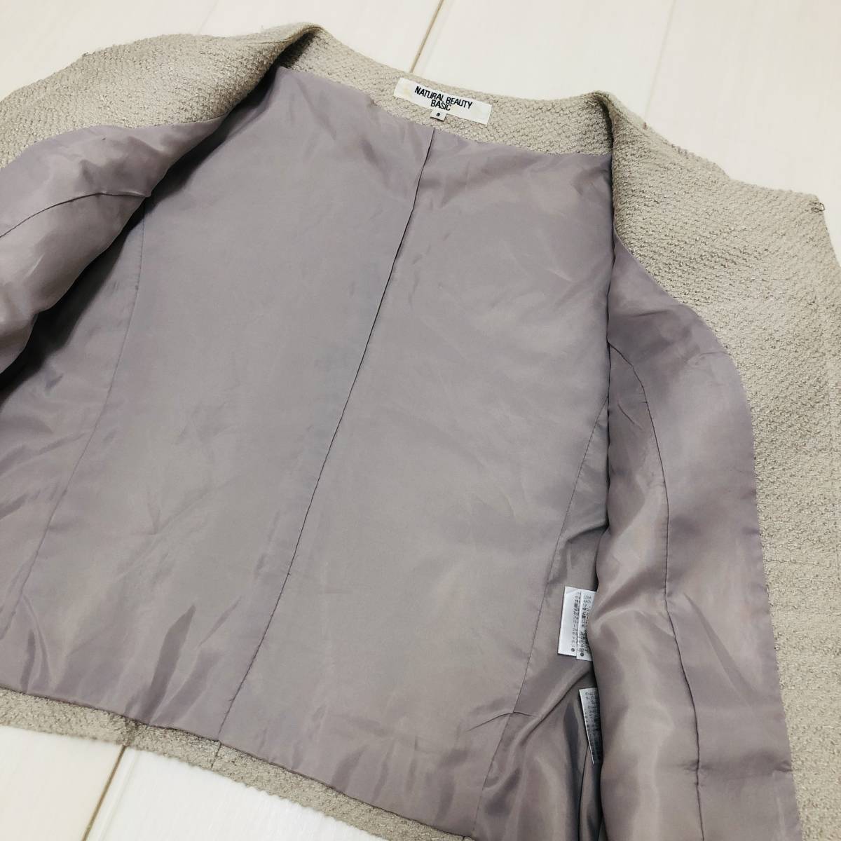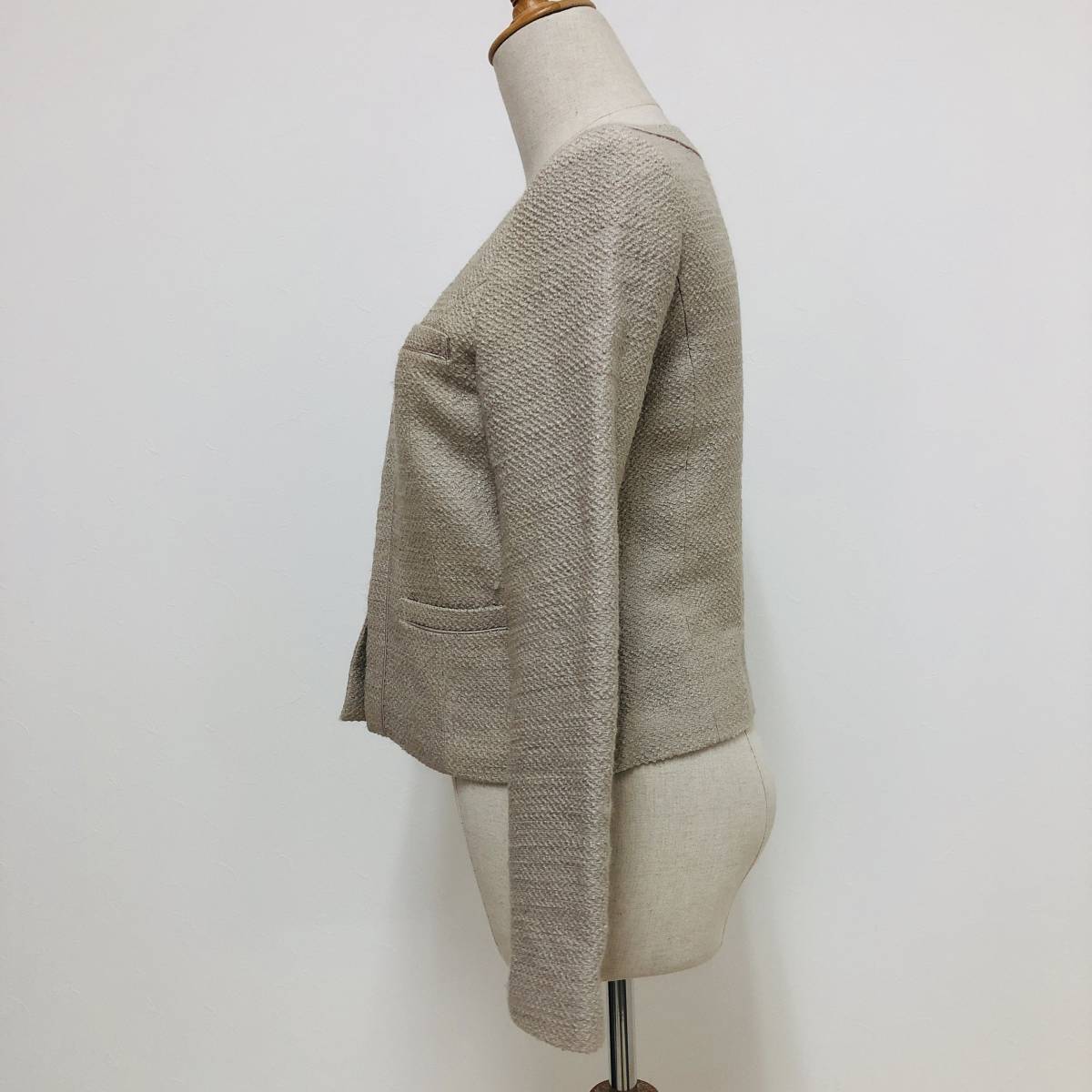 k1902 NATURAL BEAUTY BASIC ナチュラルビューティー ジャケット ノーカラー 毛混 コットン混 S ベージュ 上品 エレガントガーリーチック