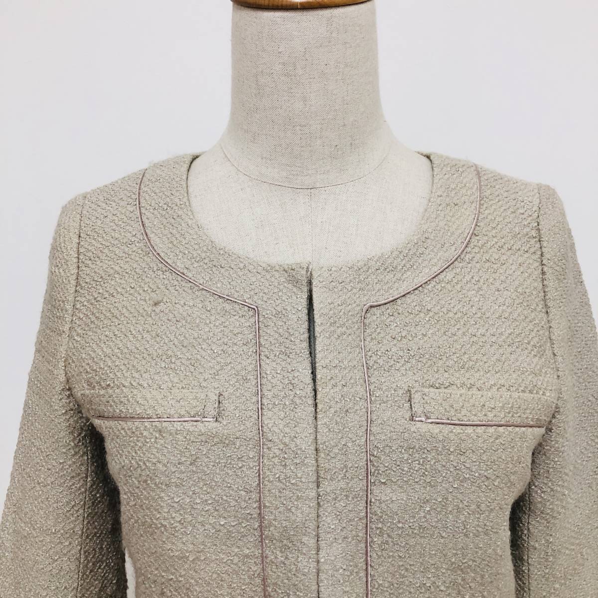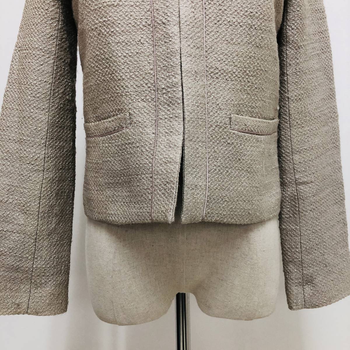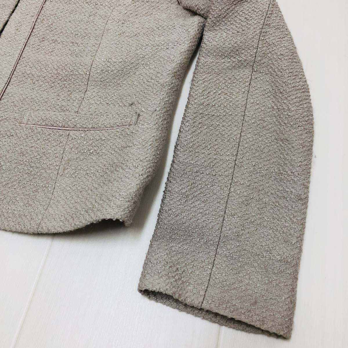 k1902 NATURAL BEAUTY BASIC ナチュラルビューティー ジャケット ノーカラー 毛混 コットン混 S ベージュ 上品 エレガントガーリーチック