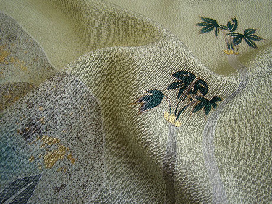 | ちょっと一言 | あらゆるフォーマルシーンにお召頂けるぽってり極上ちりめん地の趣溢れる素敵な訪問着です。 帯や小物次第で様々な表情をお愉しみ頂けることでしょう。 |