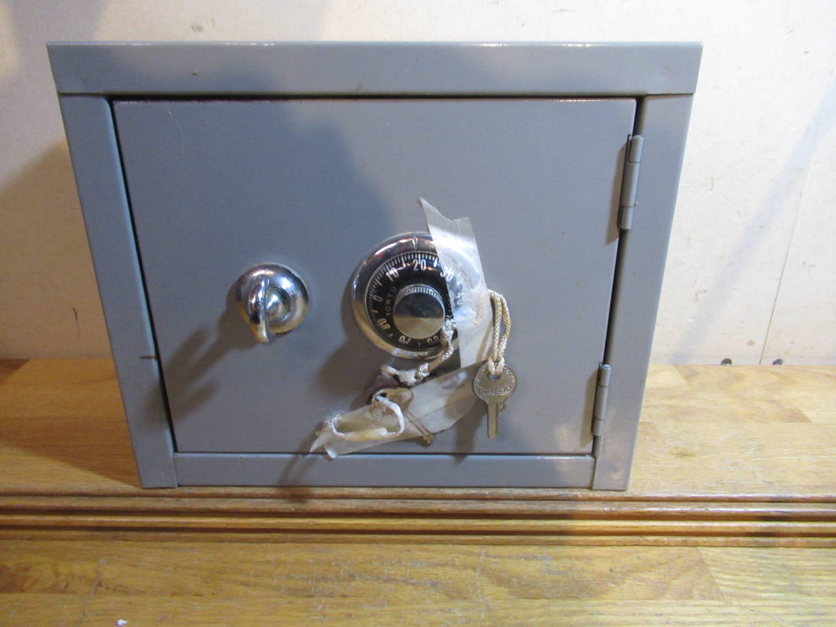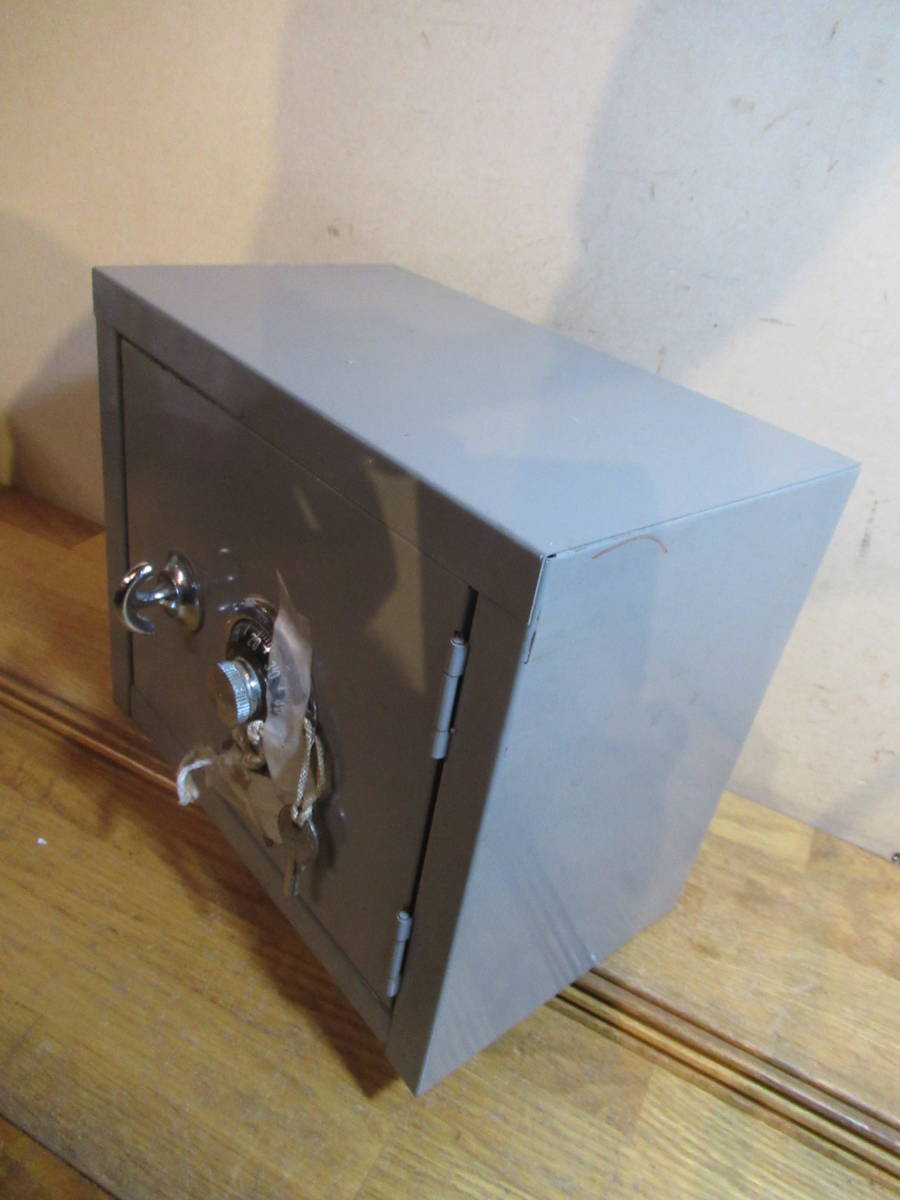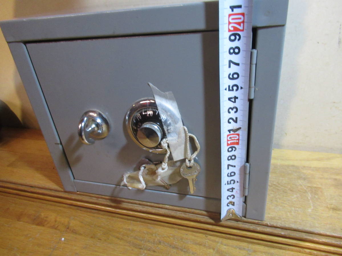 送料込 昔の調剤薬局で使用されていた 薬品用金庫 鍵付き スチール製 小型のダイヤル鍵付き収納庫