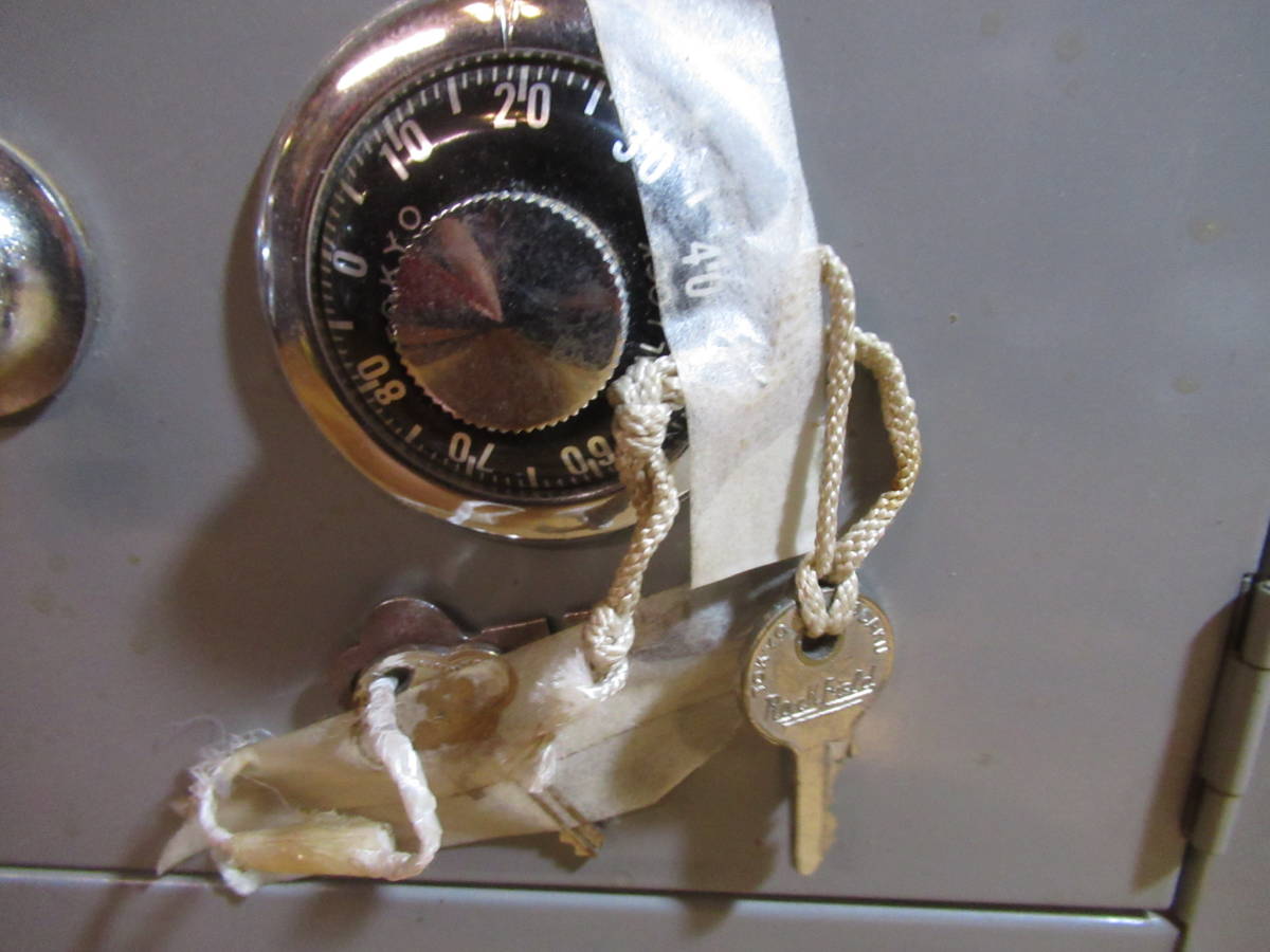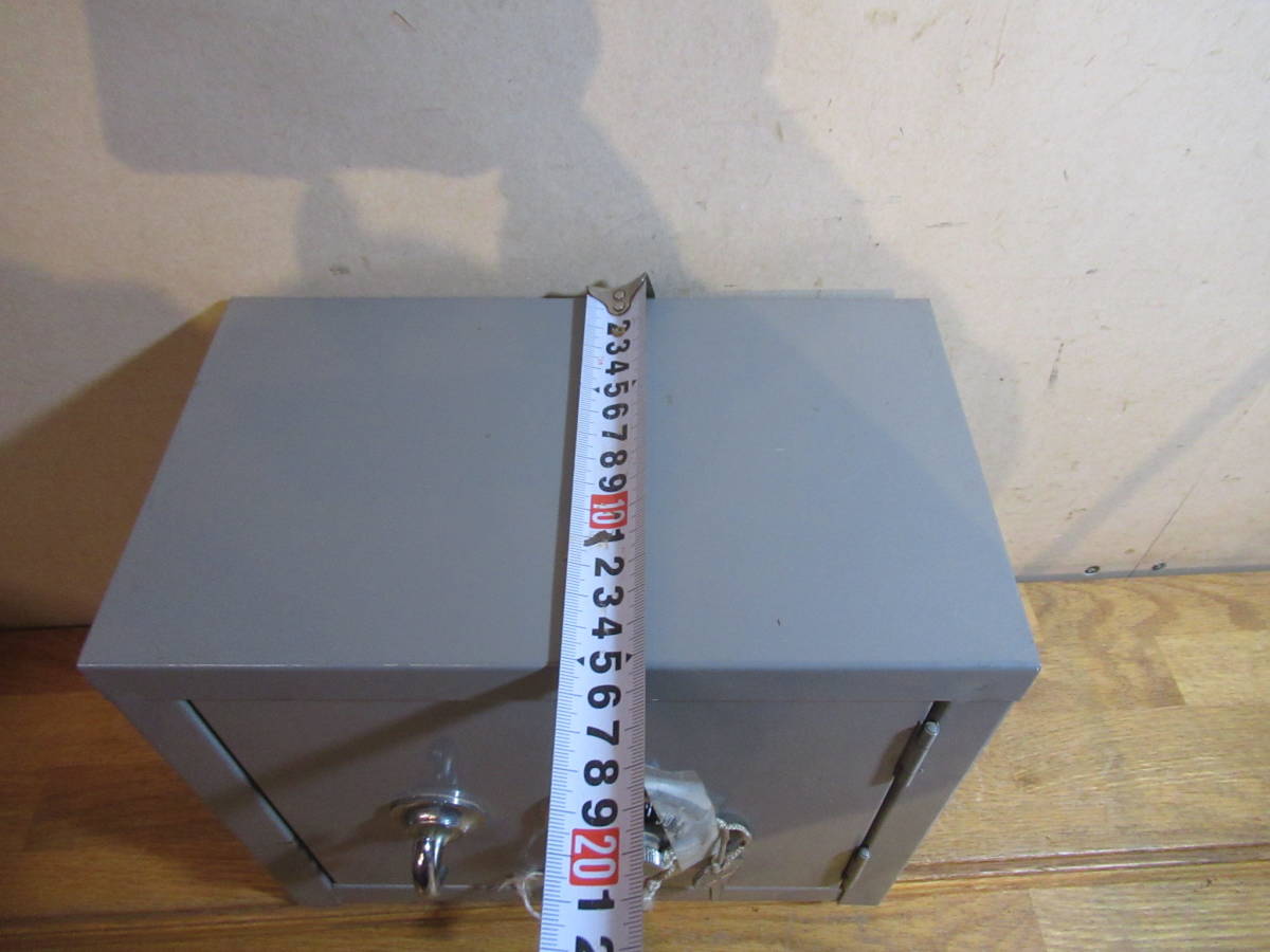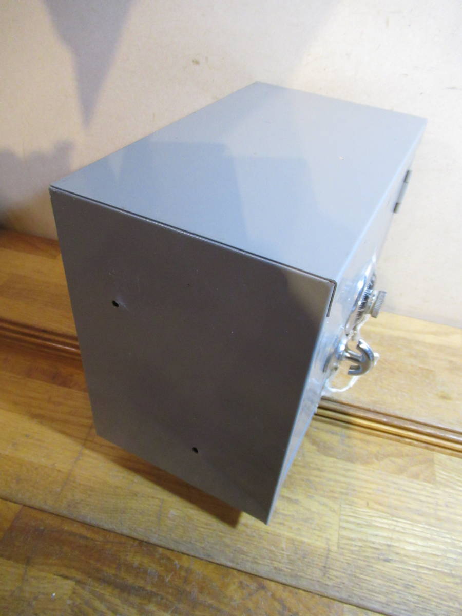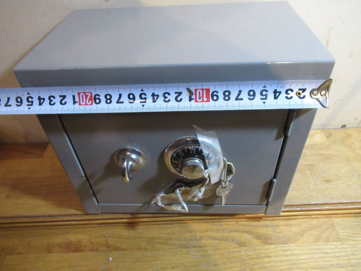 送料込 昔の調剤薬局で使用されていた 薬品用金庫 鍵付き スチール製 小型のダイヤル鍵付き収納庫