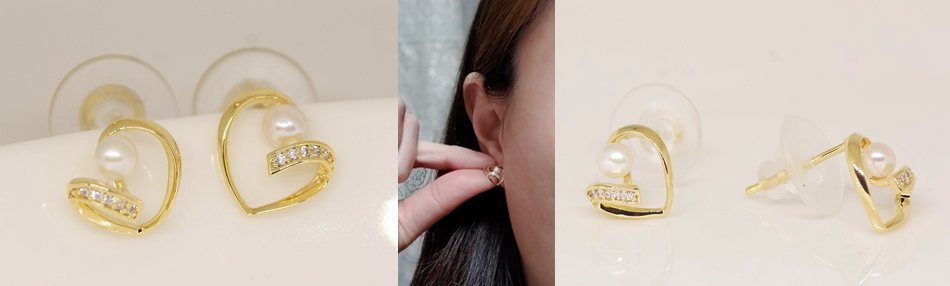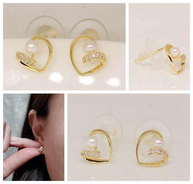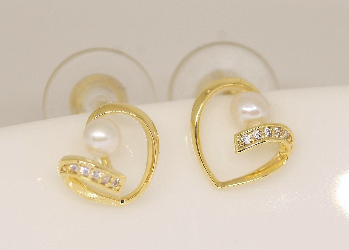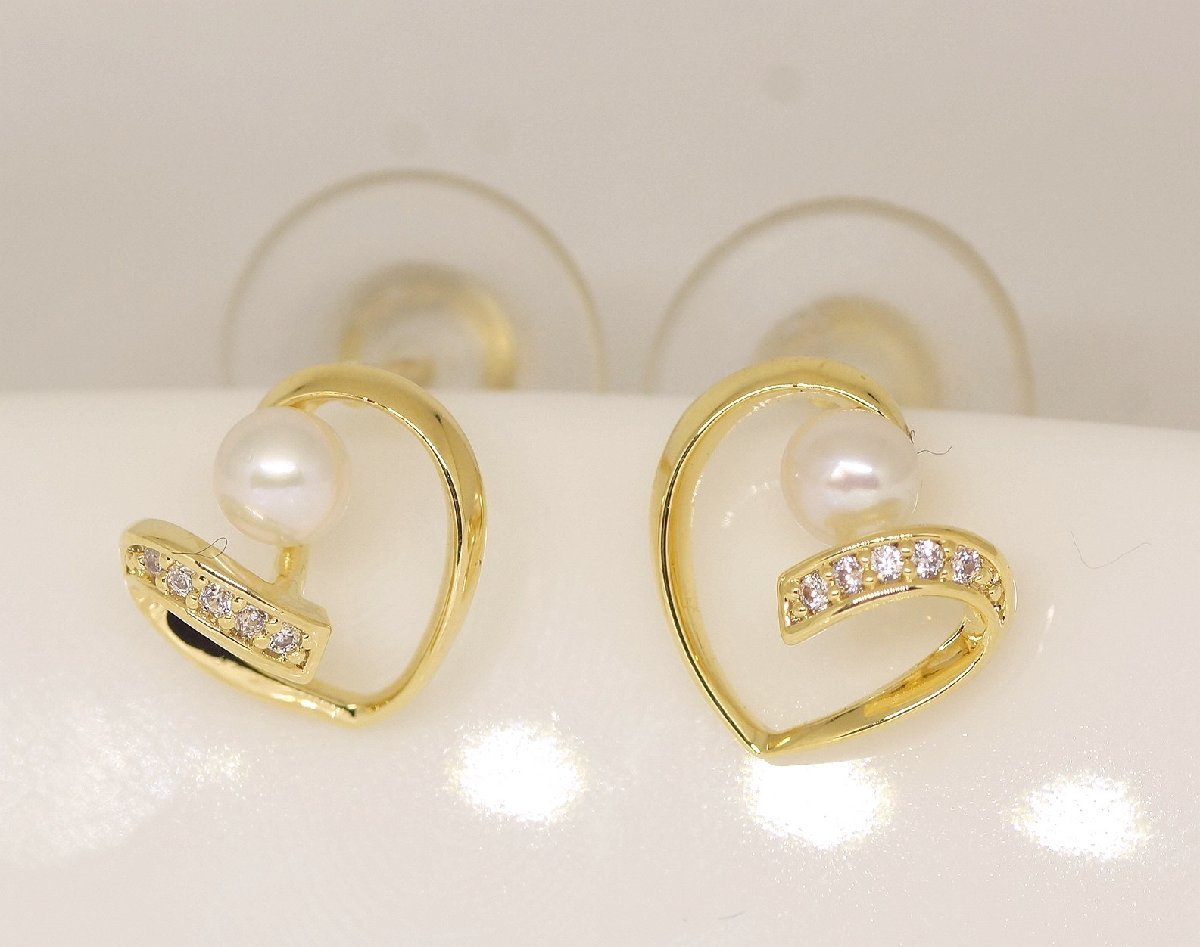 18K RGP ゴールド ダイヤ CZ パール ハート ピアス gp5581