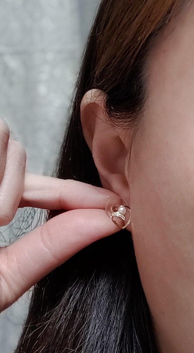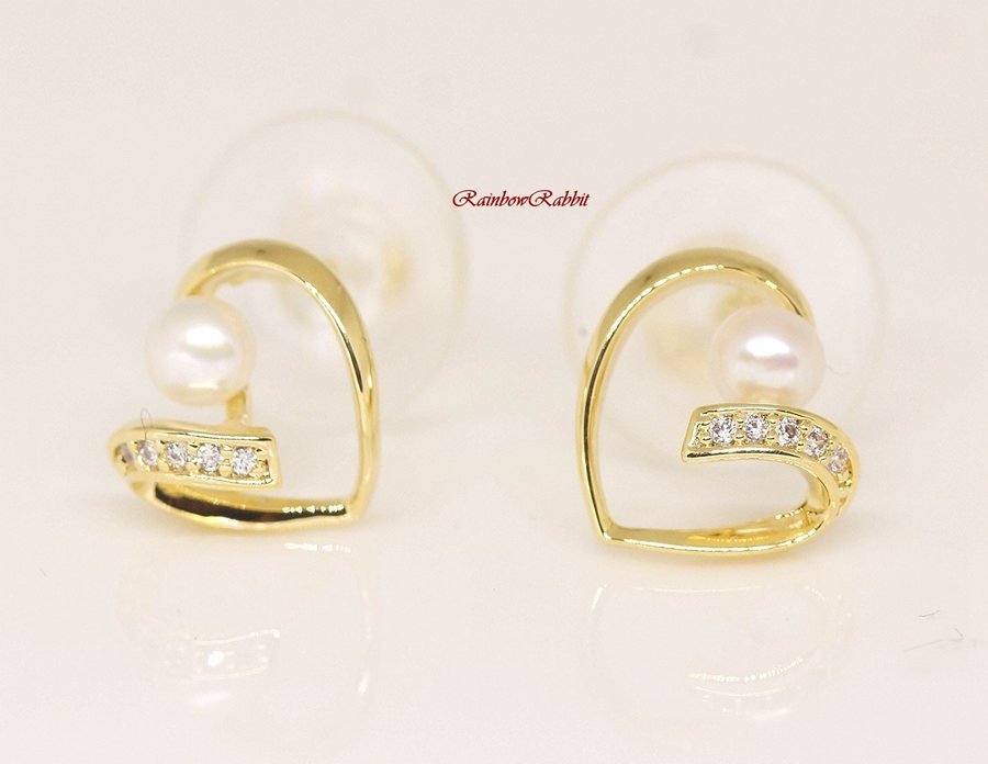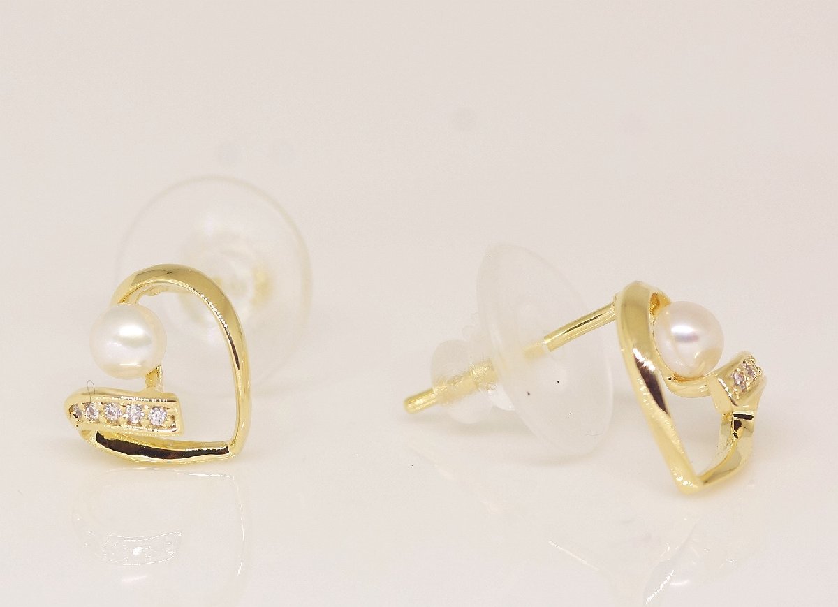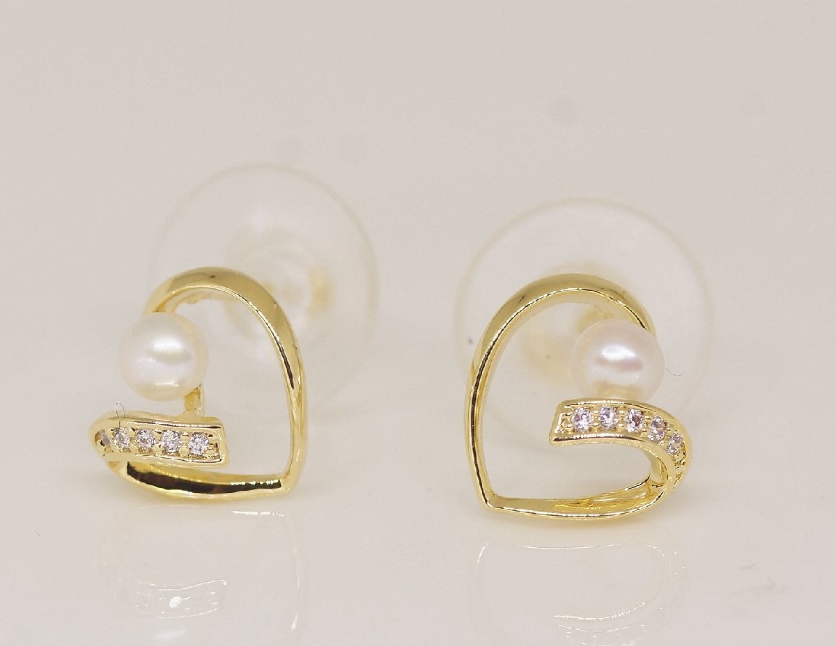18K RGP ゴールド ダイヤ CZ パール ハート ピアス gp5581