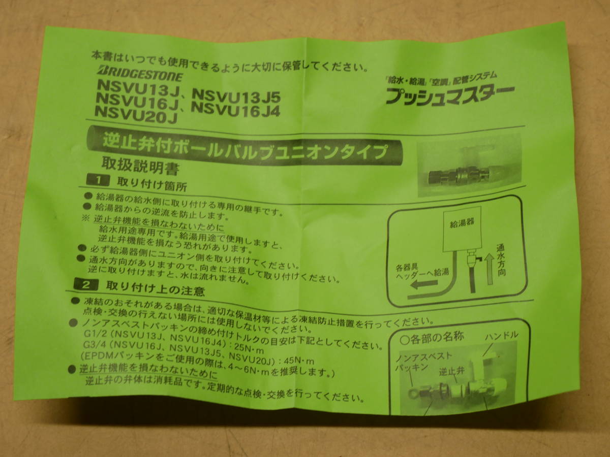 ブリヂストン プッシュマスター逆止弁付ボールバルブユニオン13J NSVU13J 5個セット 即決価格 | |||