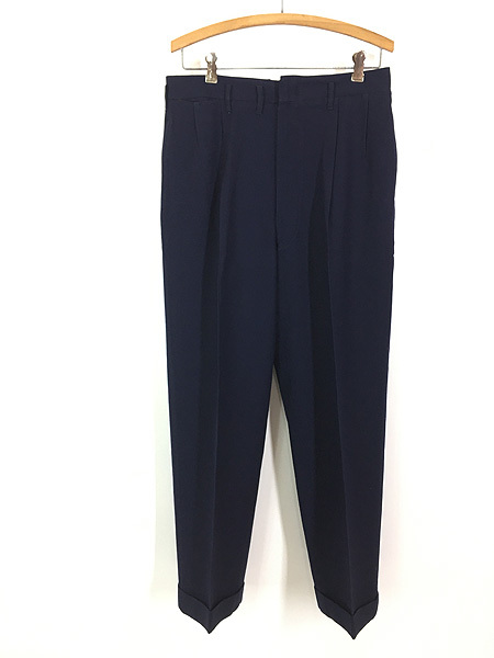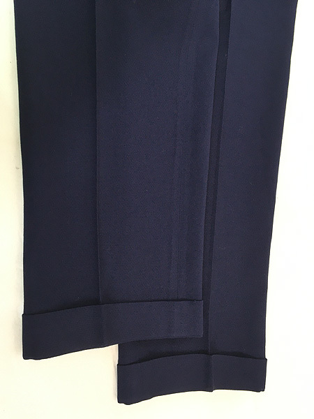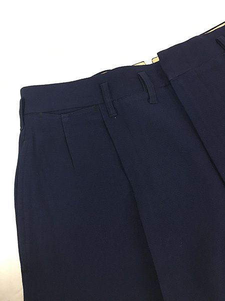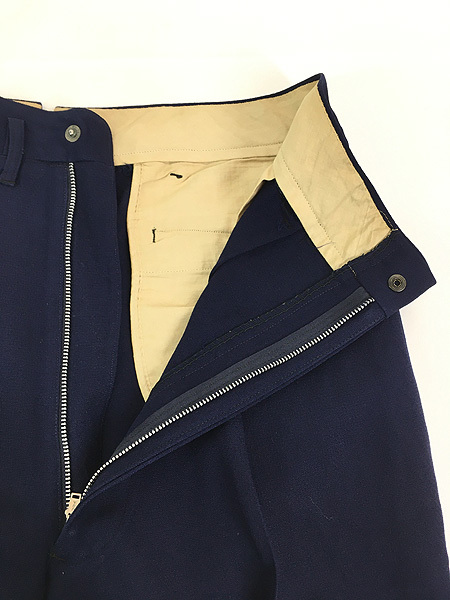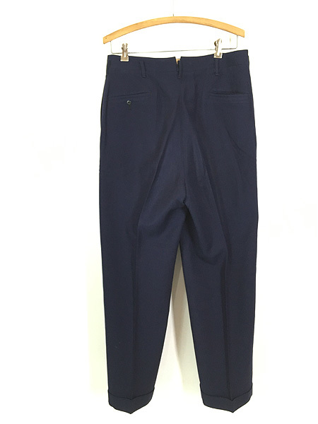 柔らかな上質ウール素材・ウエストセンター割れ・Gripperスナップボタン・TALONジップフライ・2タック・細めでベルト幅狭めのベルトループ・スラッシュポケット・裾ダブル。