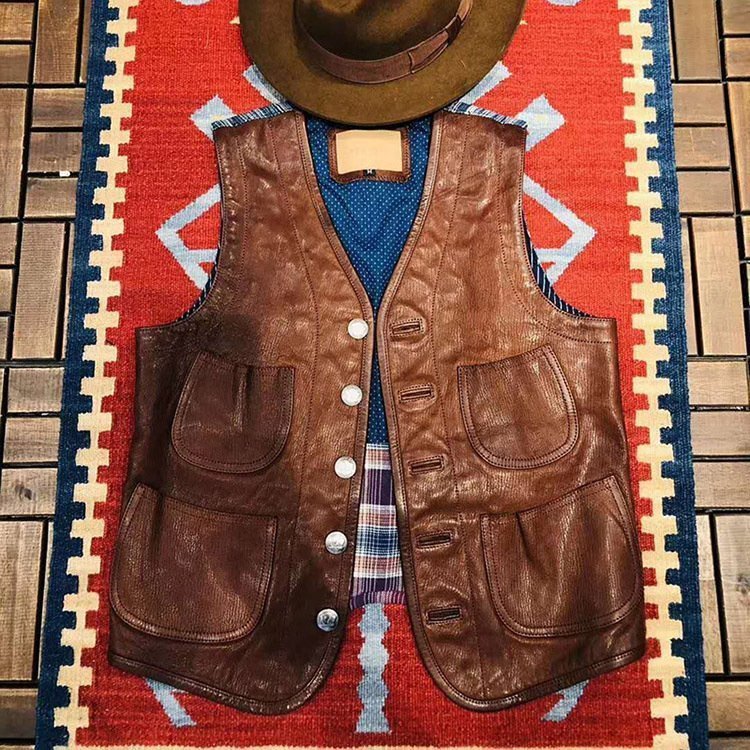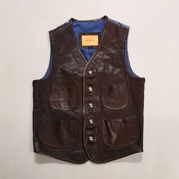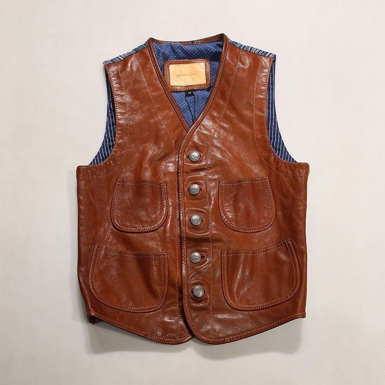 ヴィンテージ50s 復刻モデル レザージャーキン ベスト 本革 切り替え 羊革  M~4XL ライダース ダークブラウン
