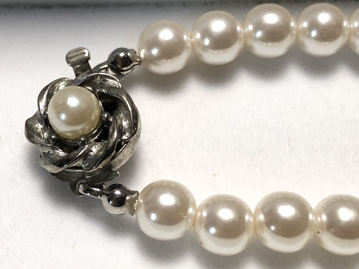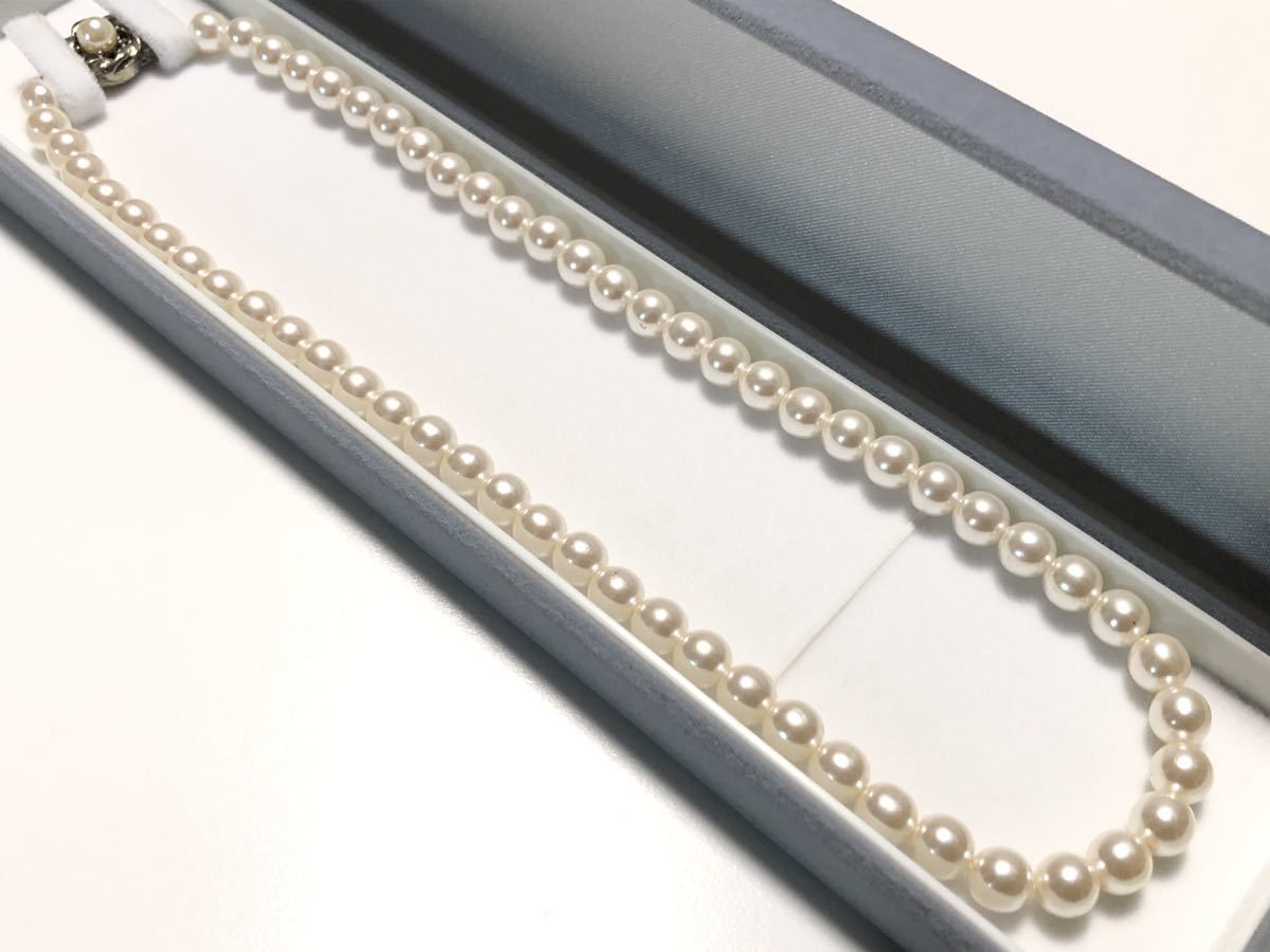 6.5㎜玉のフェイクパールを使用したネックレスです。金具部分に若干のくすみがあります。