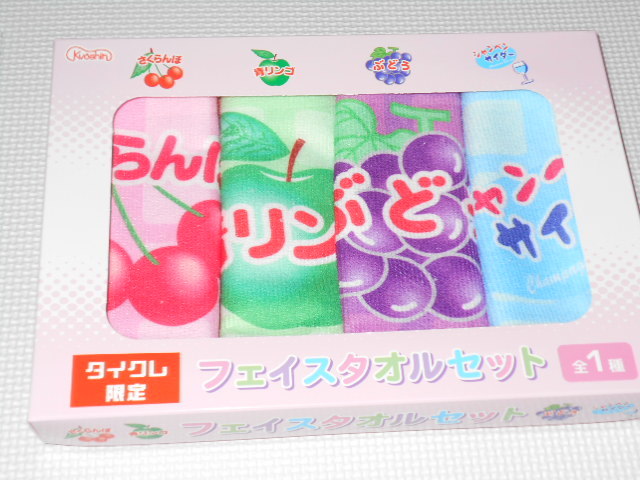 さくらんぼ餅 フェイスタオルセット 4種類 さくらんぼ・青リンゴ・ぶどう・サイダー★新品未開封★入札と同時に落札