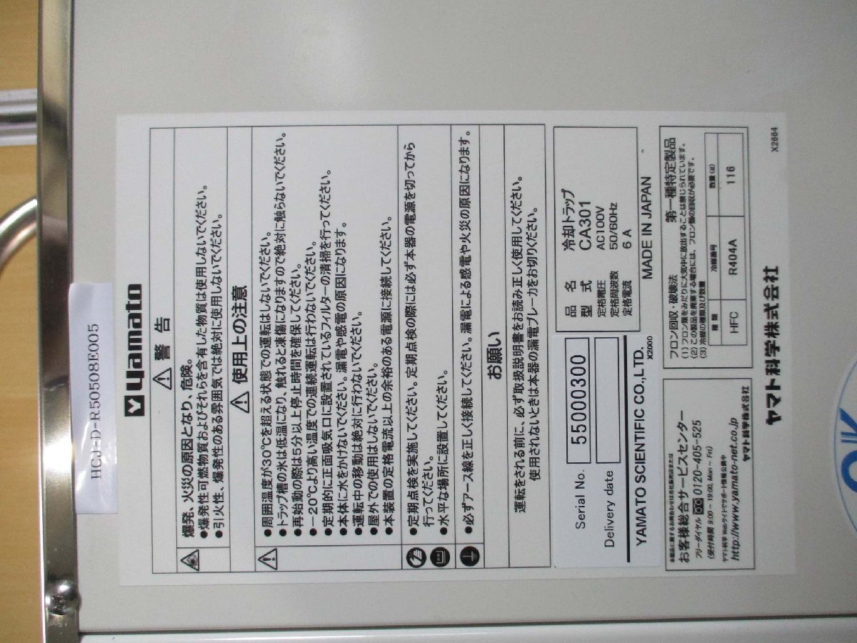 中古 YAMATO COOLING TRAP CA301 冷却トラップ AC100V 6A <送料別>(HCJ-D-R50508E005)