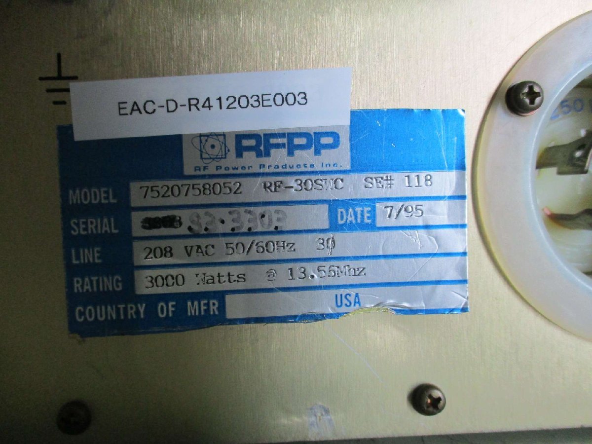 中古 RFPP RF30S RF Generator B 7520758052 RF-30SWC SE 118 発生器 <送料別>(EAC-D-R41203E003)