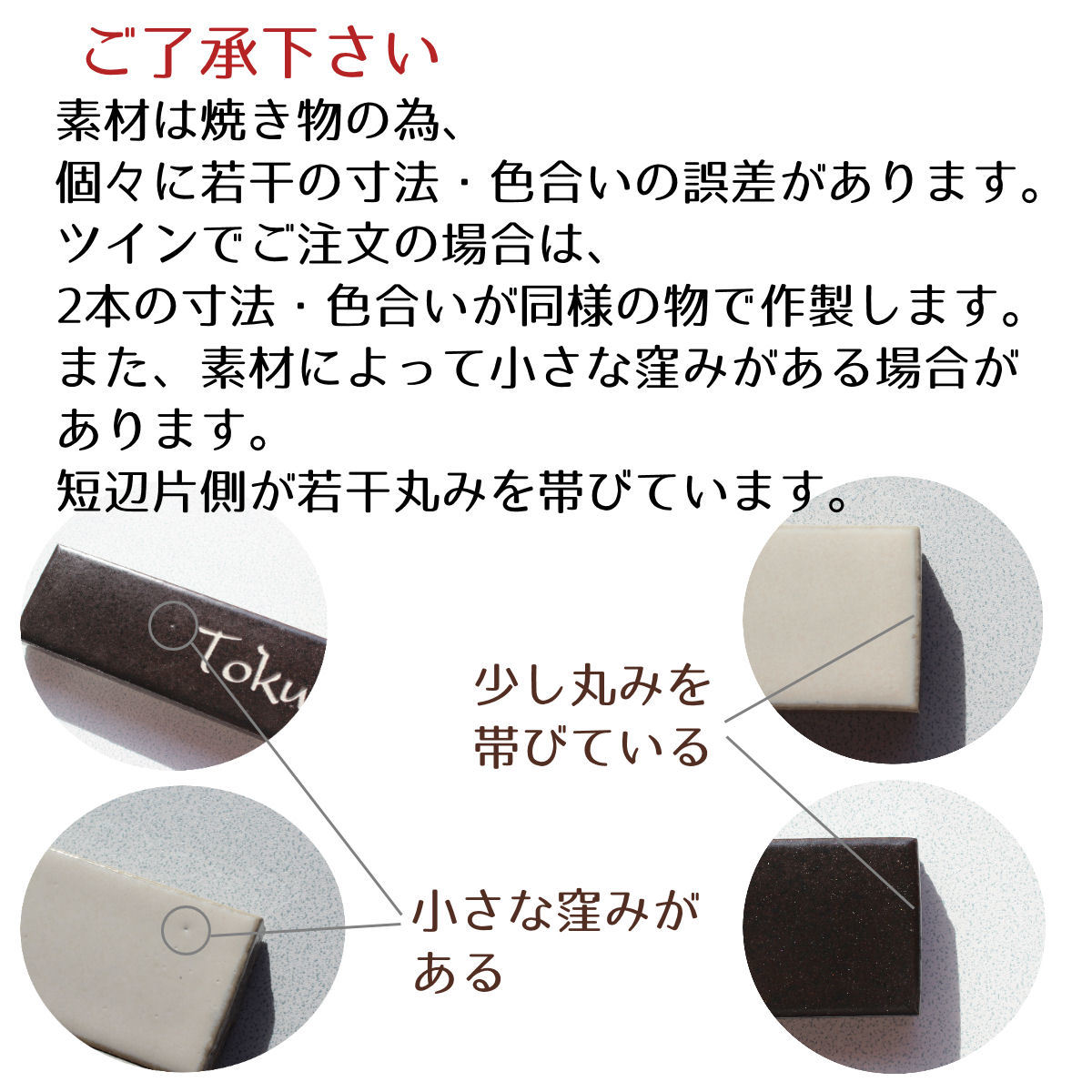 文字は彫刻でタイル表面の釉薬を削り落として彫り込んでいます。