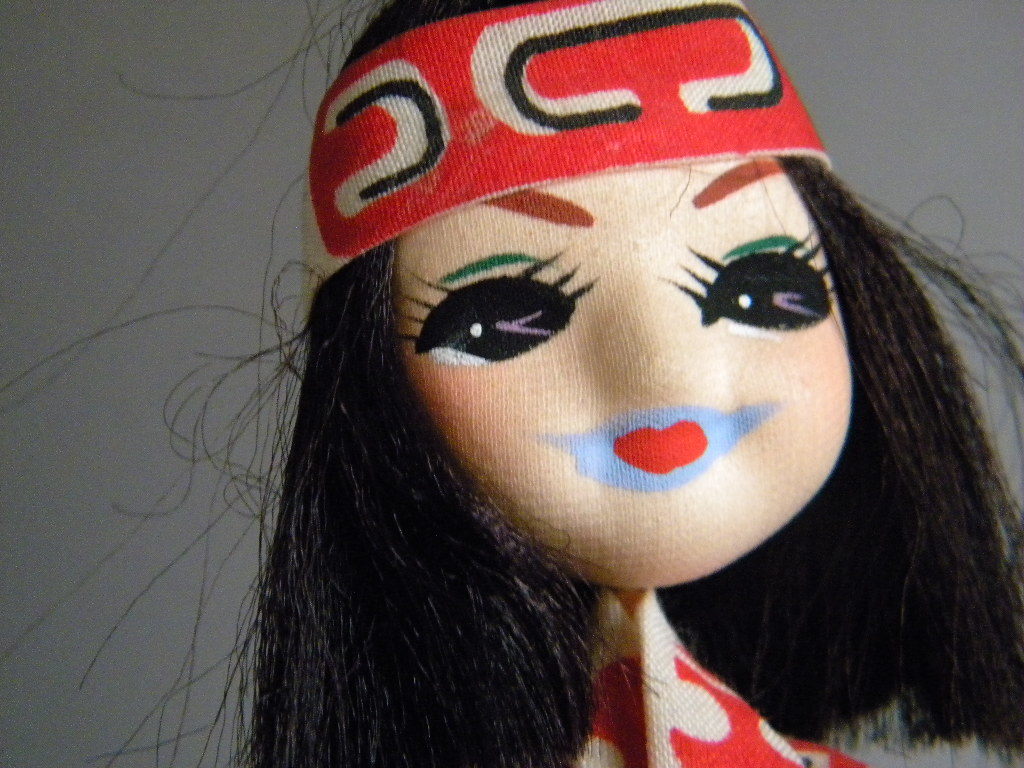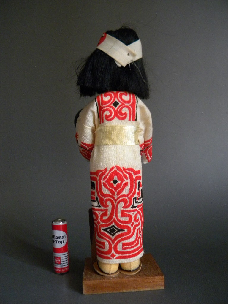 ●当時物 ★★ピリカメノコ 先住民族 アイヌ民族衣装  !! 状態良好 21㎝ 木台付 Ainu girl national Costumes  少女 おみやげ 縁起物「定形外/LP可」