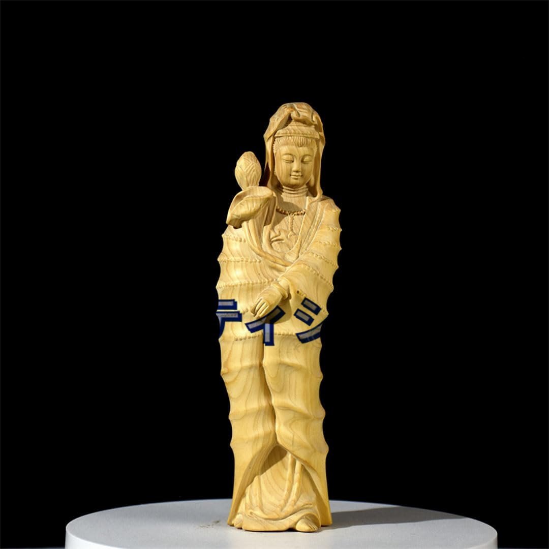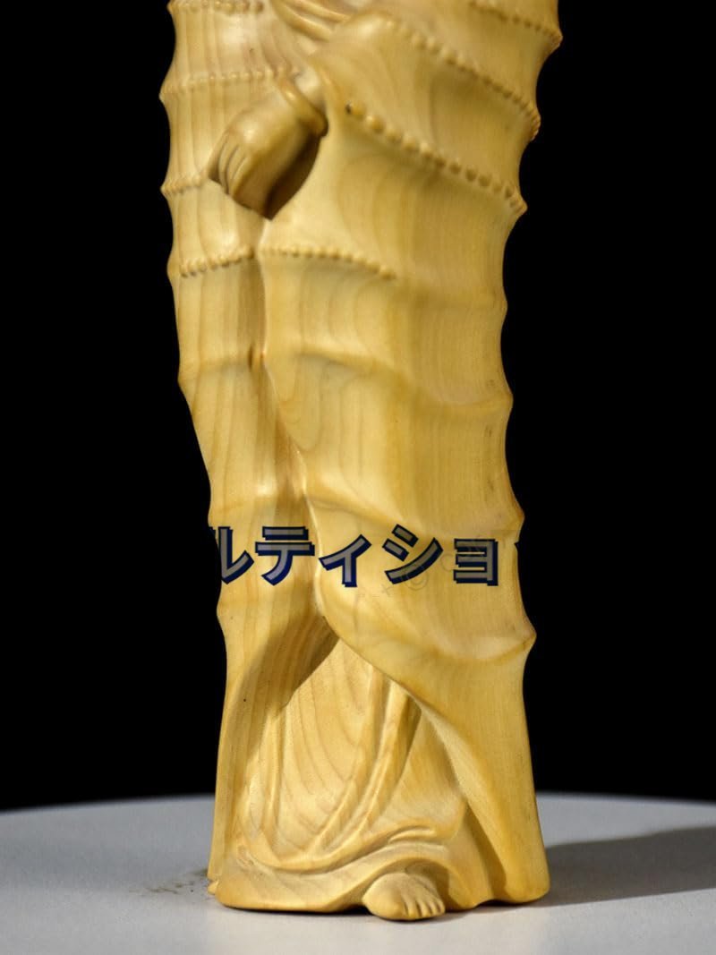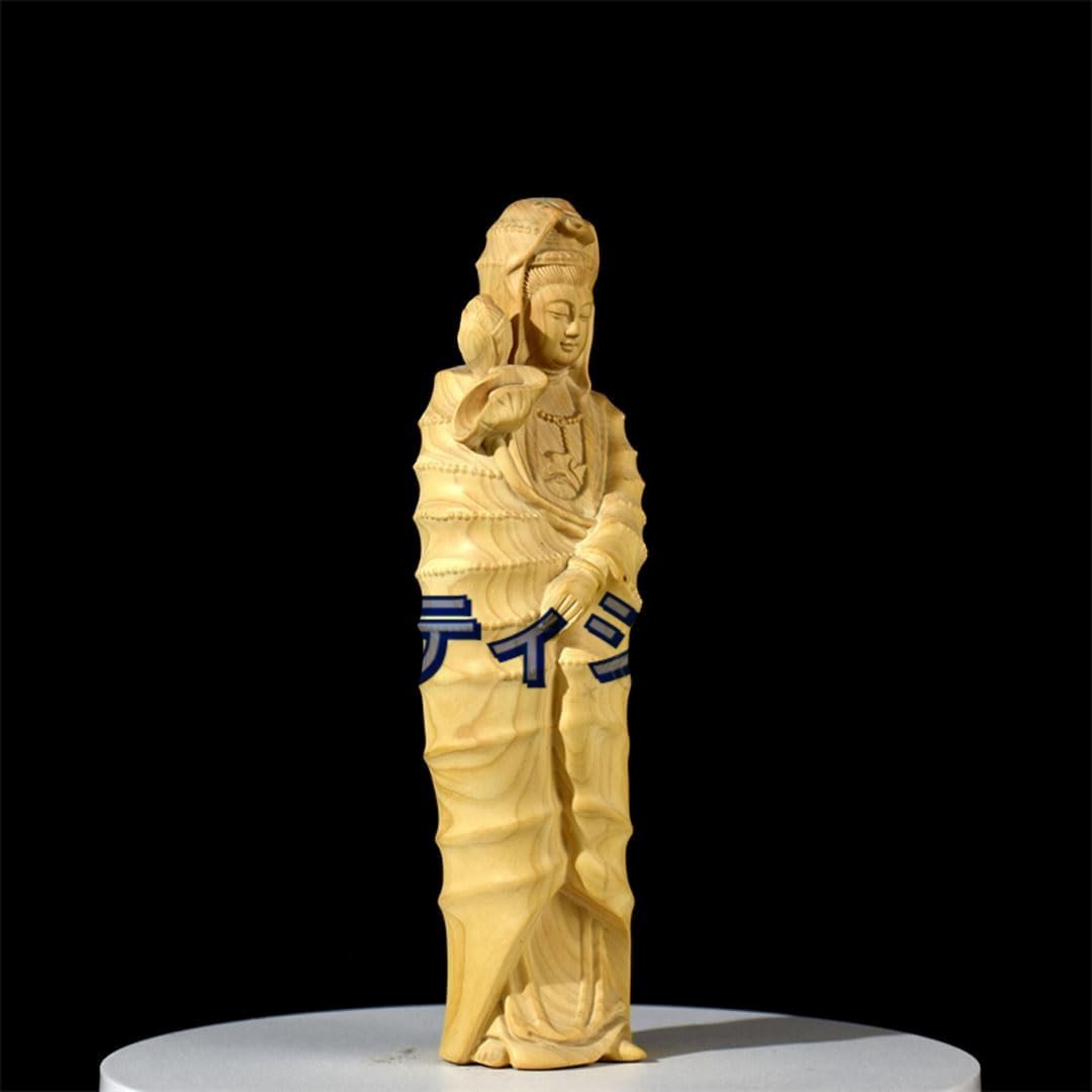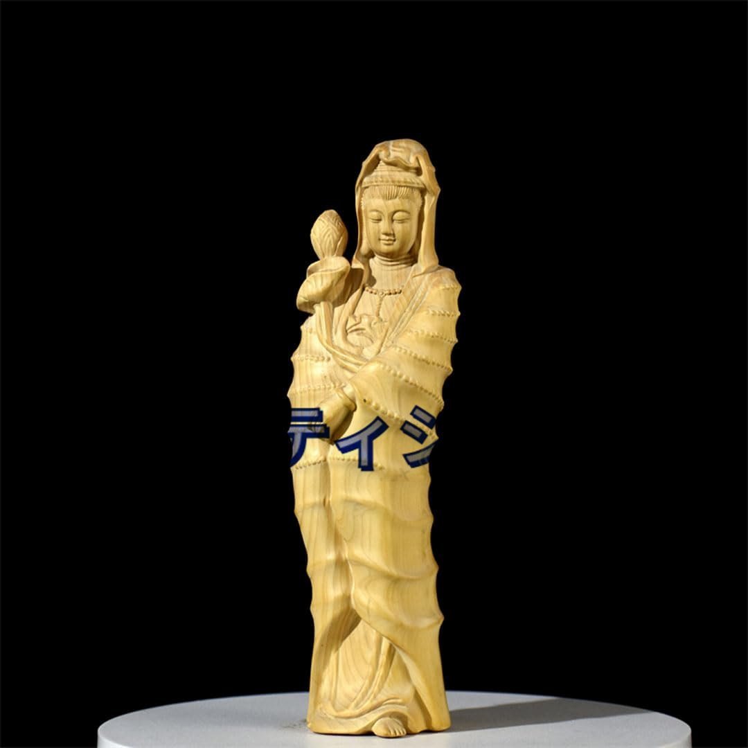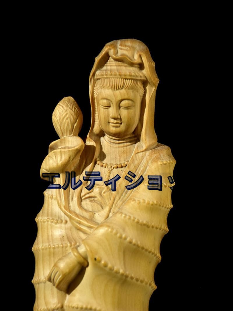 木彫りの仏像 聖観音菩薩 高級天然ツゲ木彫り『天台宗・真言宗・臨済宗』仏教美術 極上品収蔵 開運 繁盛 仏間 仏壇 (高さ17.7cm)