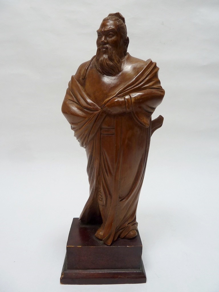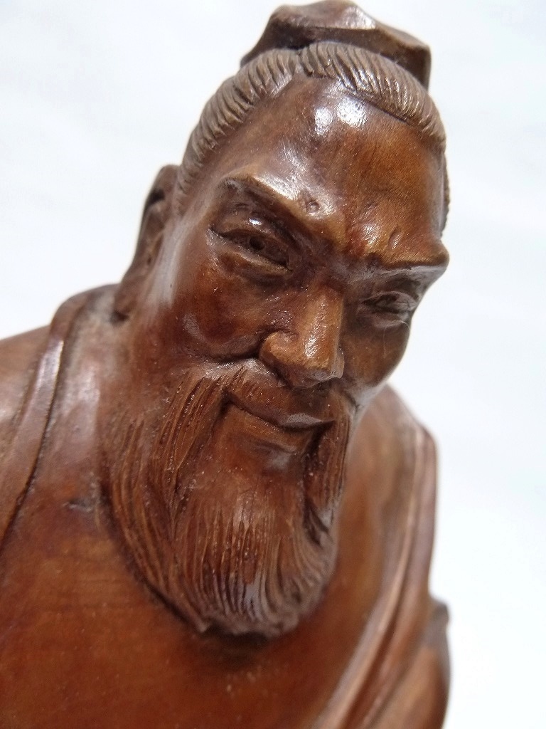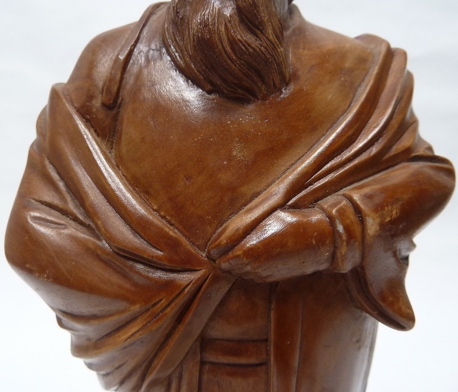 (☆BM)木製 彫刻 男性像 高さ26.5㎝ 東洋 アジア レトロ アンティーク 中国 日本 置物 オブジェ 時代物 骨董 人形 仙人
