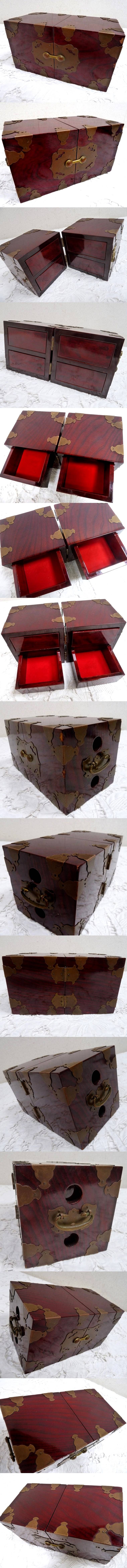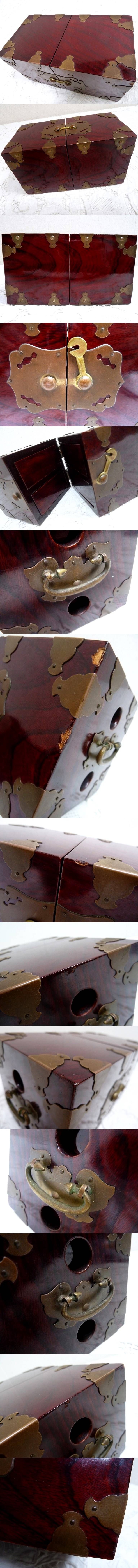 (☆BM)木製/真鍮製 小物入れ 引き出し 横幅19.5㎝ 薬棚 和風 アンティーク調 レトロ アクセサリー入れ 小ぶり 置物 日本 オブジェ