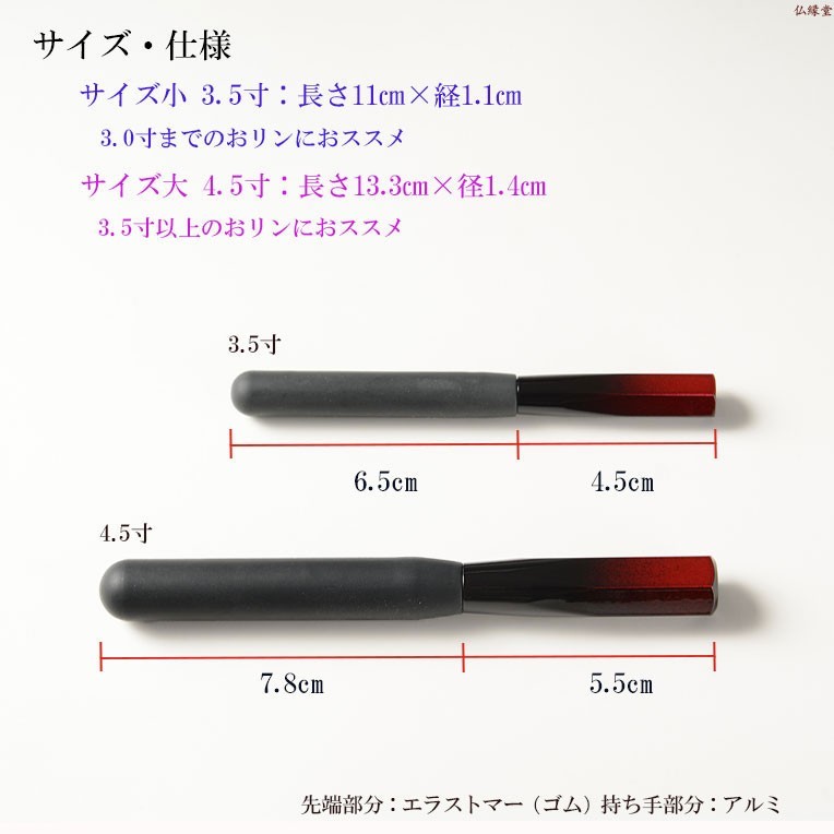 国産仏具【高級リン棒 千響(ちなり):サイズ小 3.5寸】仏具 りん リン りん棒 鐘 鈴 磬 高岡りん 送料無料