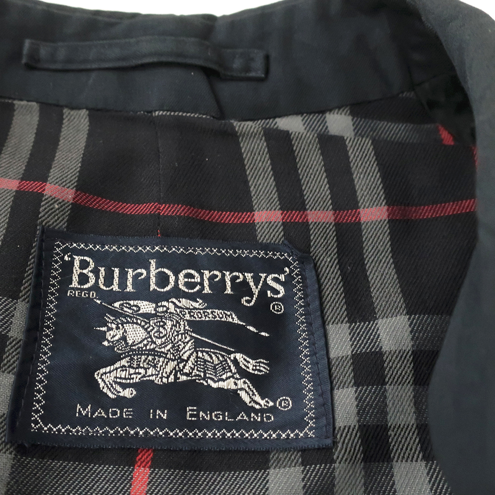 80sイングランド製 Burberrys バーバリー シングルトレンチコート ウエストベルト付き ネイビー×チェック 16(L)