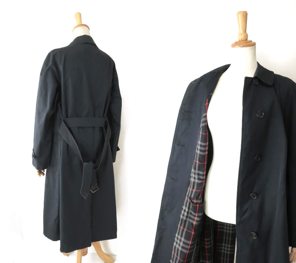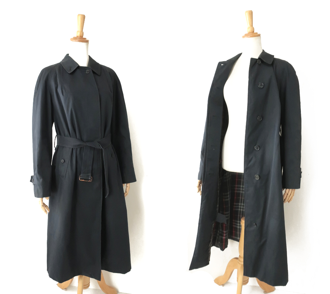 【英国製ビンテージ Burberrys バーバリー ウエストベルト付ステンカラーコート ネイビー】