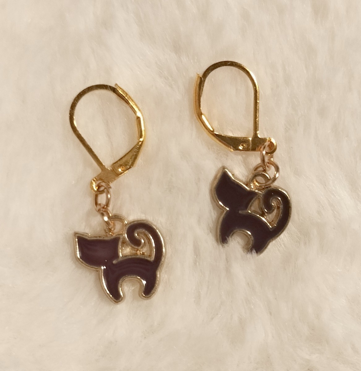 【No.934-Pu】ChamiNピアス/イヤリング ちっちゃなカラフルにゃんこ ダークパープル