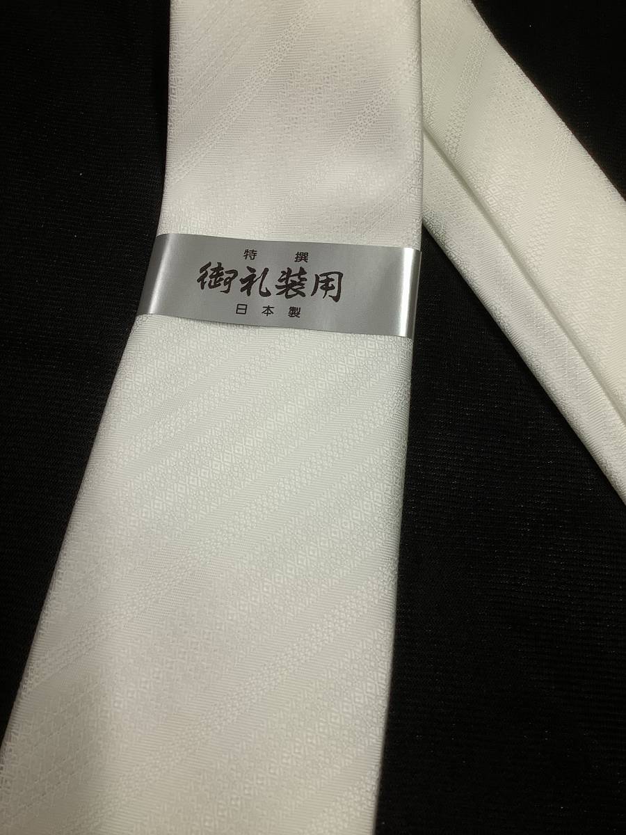 新品未使用 とにかく安い 冠婚葬祭 シルバータイ 礼装ネクタイ 日本製 白  レトロストライプ