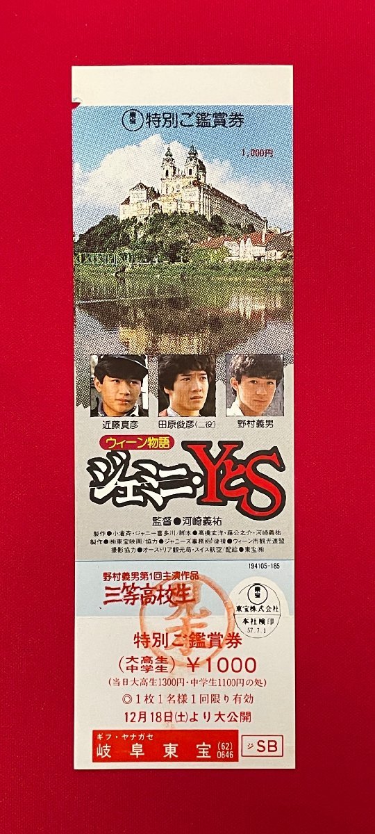 【見本品】ウィーン物語 ジェミニ・YとS/近藤真彦・田原俊彦・野村義男 岐阜東宝 特別鑑賞券 大高生・中学生 非売品 当時モノ 希少 A14800
