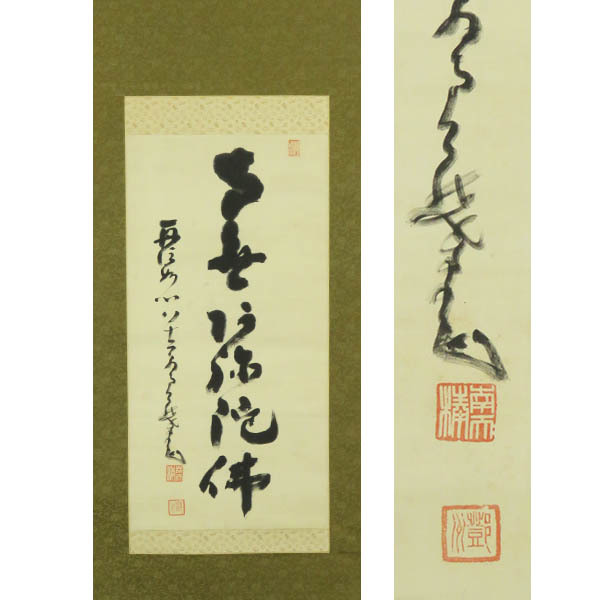 B-3944【真作】中原南天棒② 肉筆絹本 名号 掛軸/臨済宗 佐賀 師・羅山元磨 乃木希典も帰依 墨蹟 書画