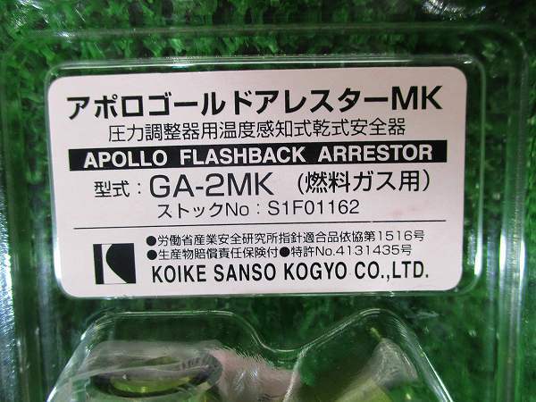 未使用品【 KOIKE / 小池 】 GA-1MK(酸素用) GA-2MK(燃料ガス用) アポロゴールドアレスターMK 各1コセット 6037