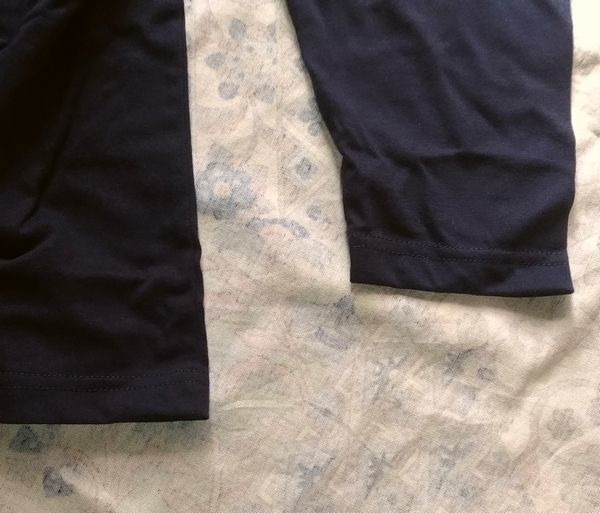 色は暗めの濃紺です。左胸に黒のロゴ刺繍とポケットがあります。