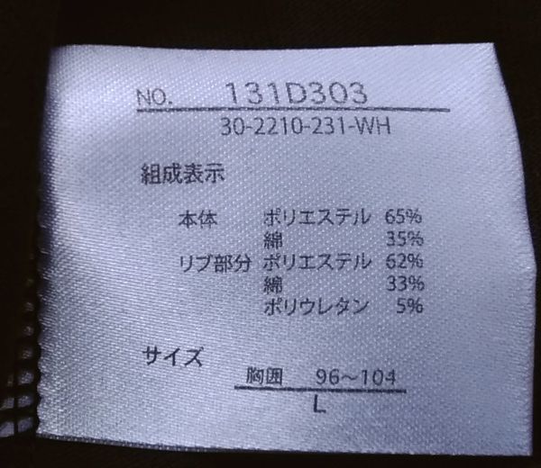 本体:ポリエステル65%、綿35%、リブ部分:ポリエステル62%、綿33%、ポリウレタン5%、