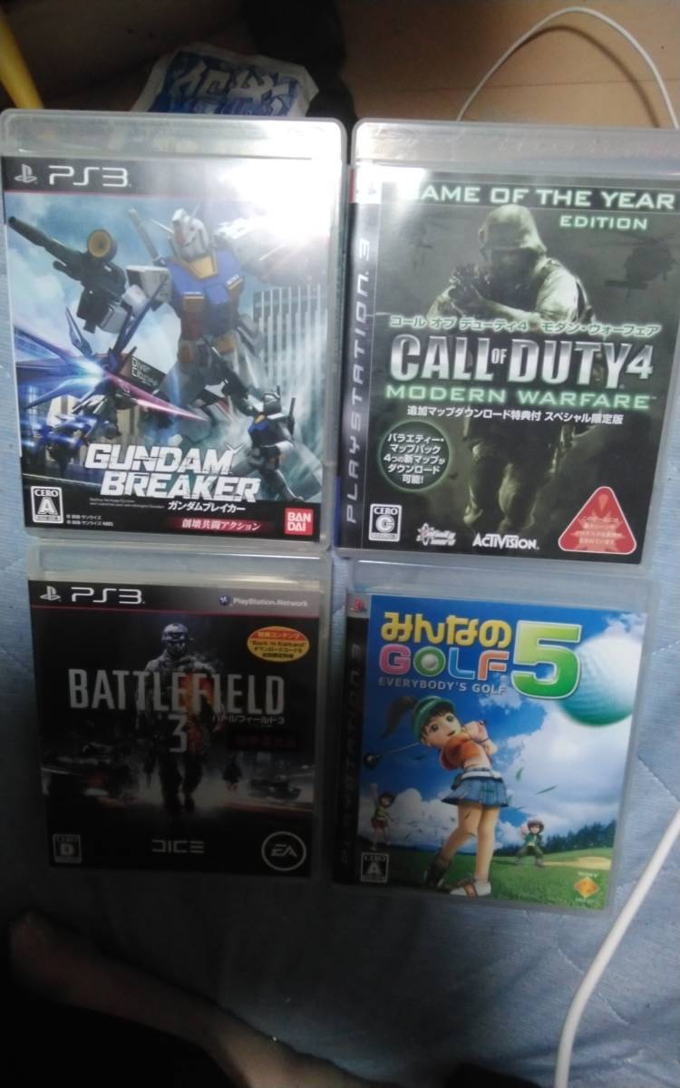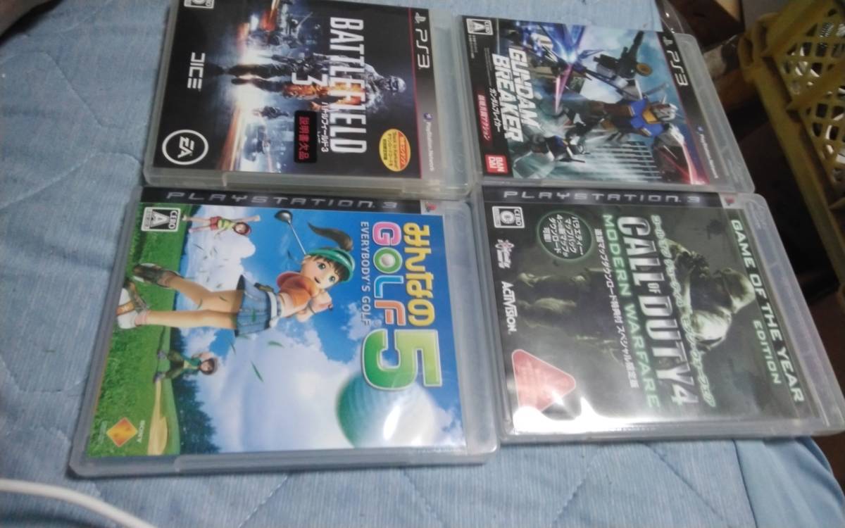 | PS3のソフト4本セットの出品です。 ★(ガンダムブレーカー、コールオブデューティ4、みんなのGOLF5、BATTLEFIELD3 )★ ★BATTLEFIELD3 は、説明書がありません) 興味のある方、ぜひ、この機会にお求めください。 | |||
