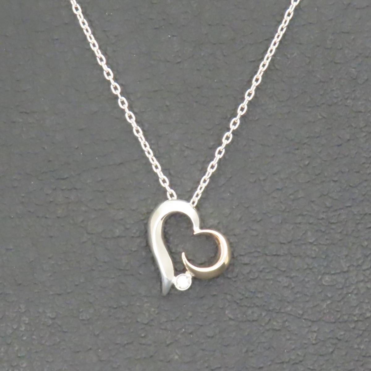 新品同様 美品 STAR JEWELRY スタージュエリー ハート ネックレス ペンダント ダイヤモンド 0.01ct シルバー925 × K10 K10YG 2.1g
