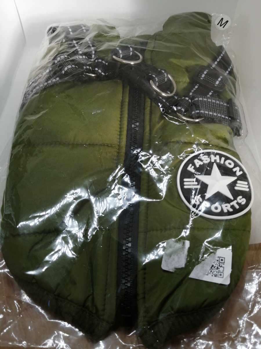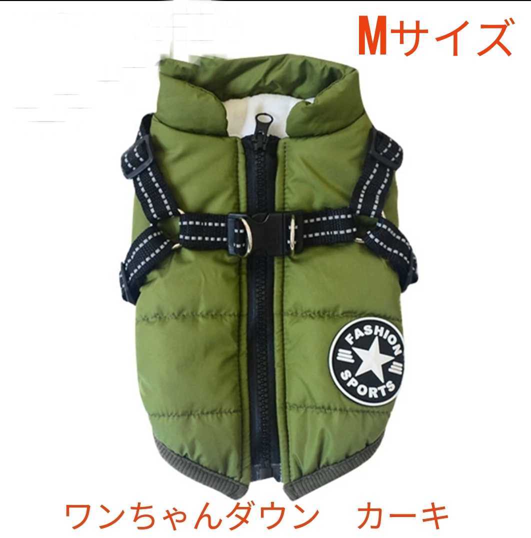 ワンちゃんダウンベスト 防寒 防水 ハーネス カーキ Mサイズ