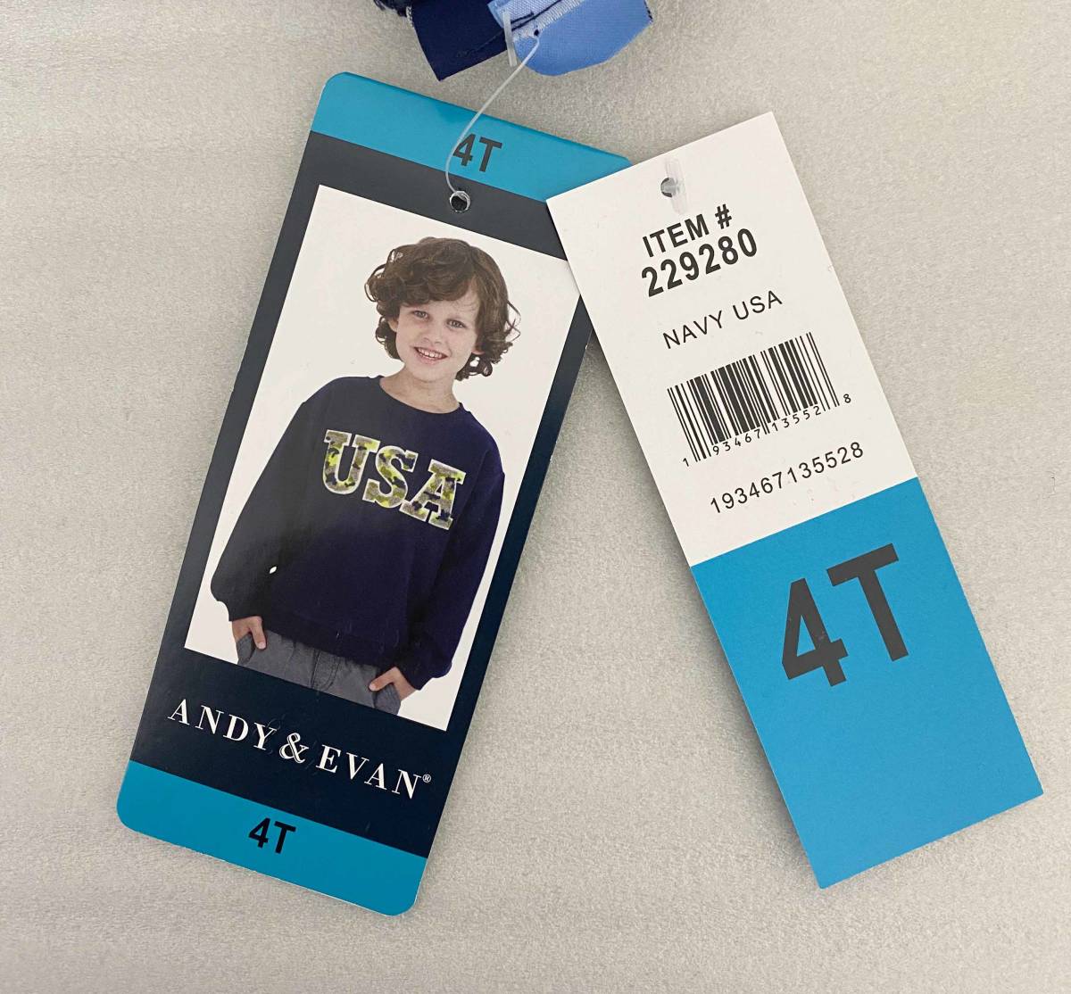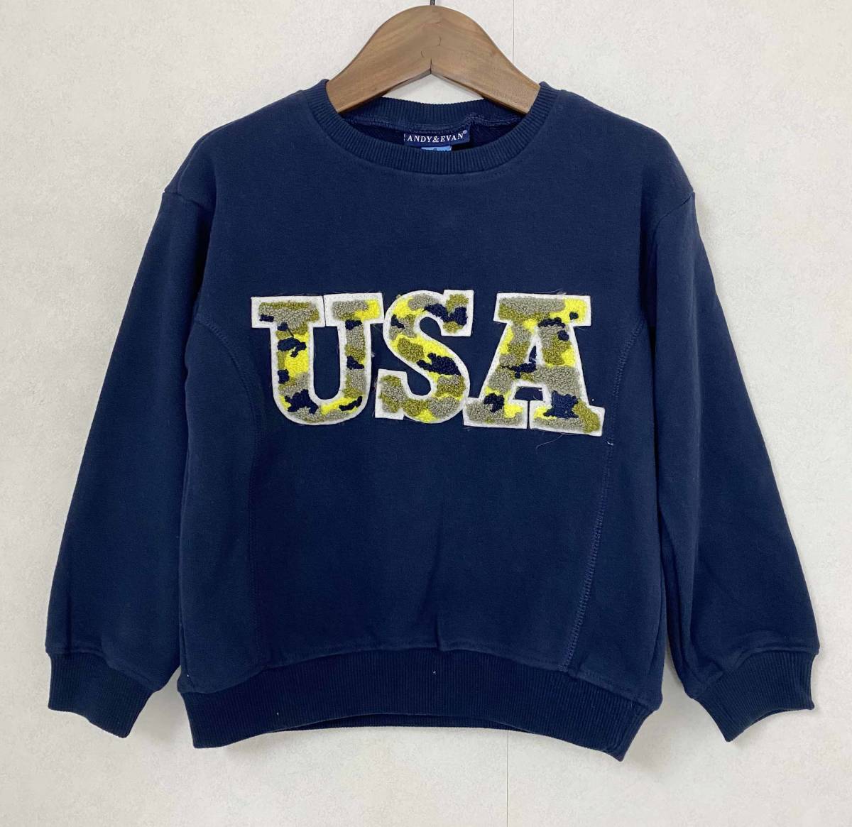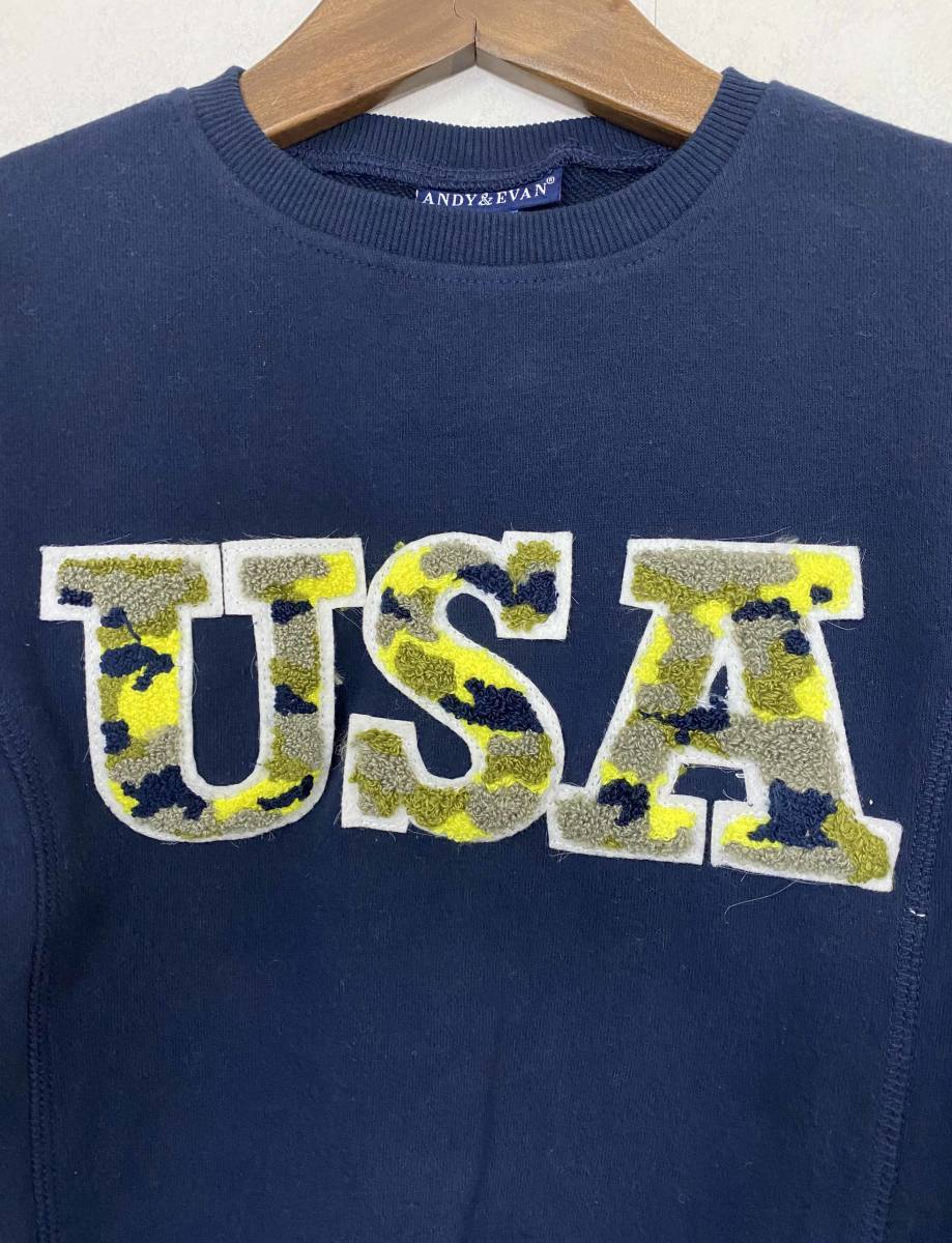 新品 110 ★ コストコ ANDY&EVAN キッズ トレーナー ネイビー USA 裏毛 4T スウェット シャツ ビッグワッペン 子供用 ボーイズ ガールズ