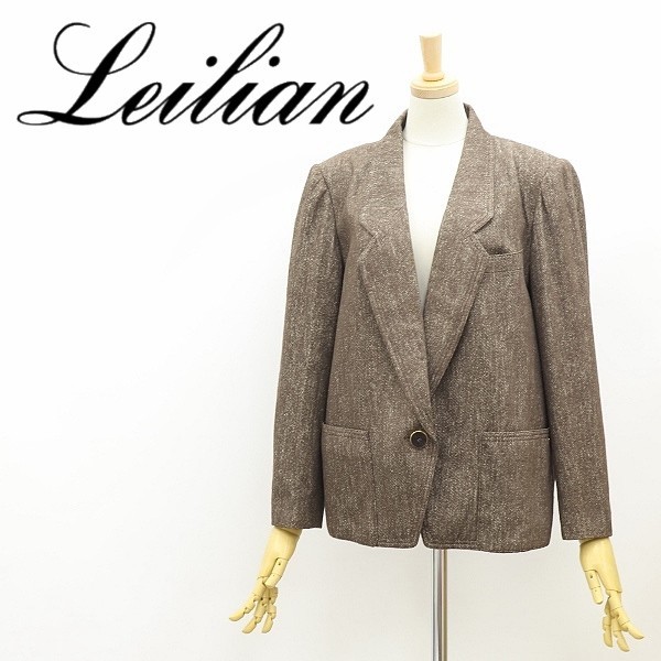 ◆Leilian レリアン E sports シルク100% ツイード 1釦 ジャケット 茶色 ブラウン 13+ 大きいサイズ | |