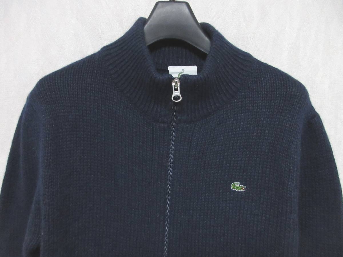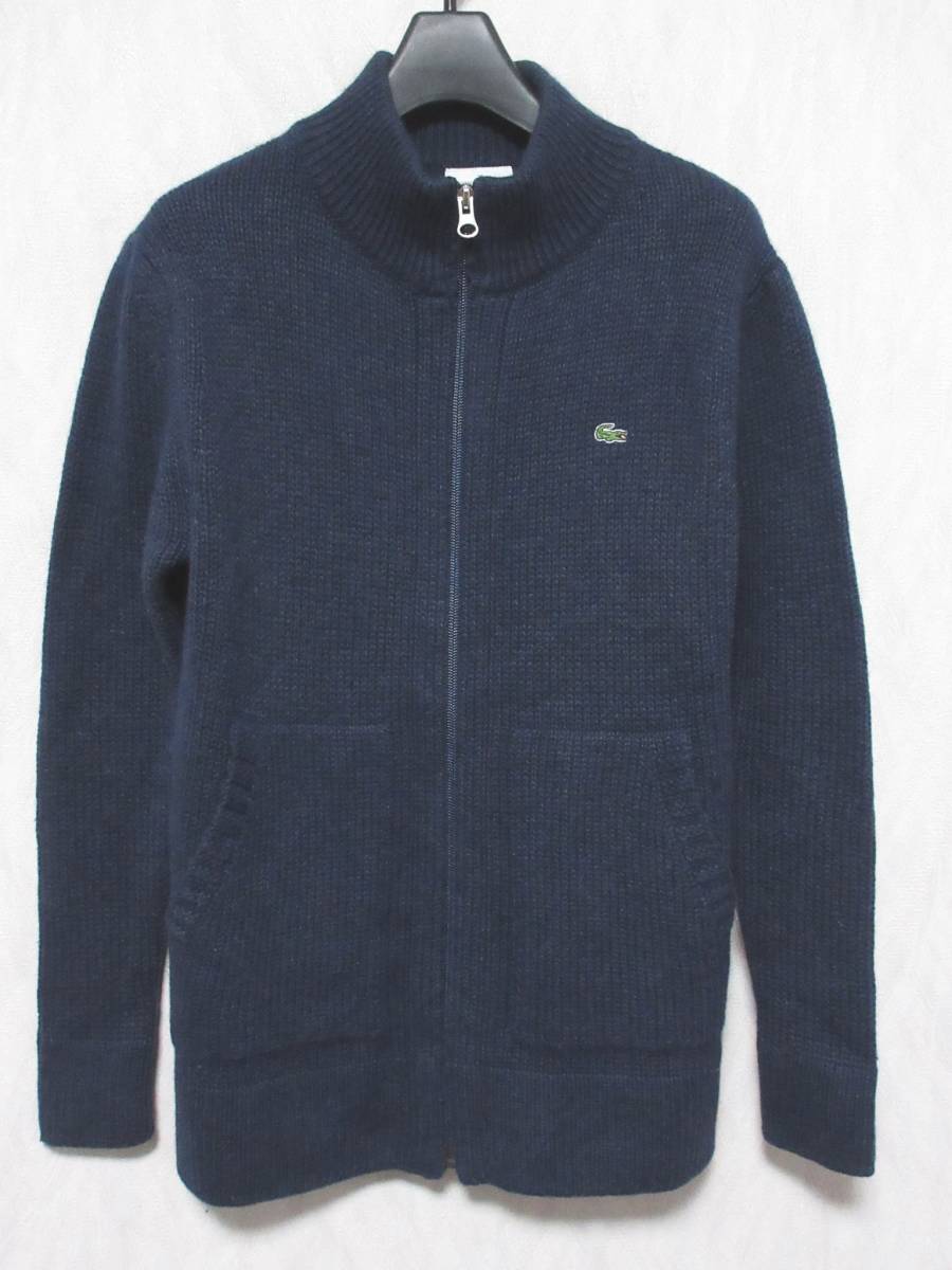 LACOSTE ラコステ カーディガン ニット ジップ ロゴ カシミヤ混 レディース 38 紺 irmri kn1590