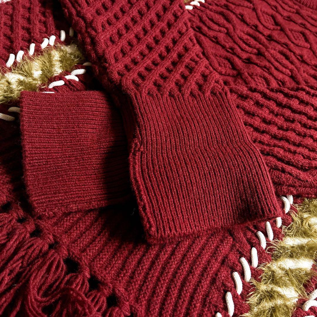 ★体を包み込むウールニット素材が心地良く、フェイクファー切替のコード刺繍が都会的で大人素敵なアイテム。